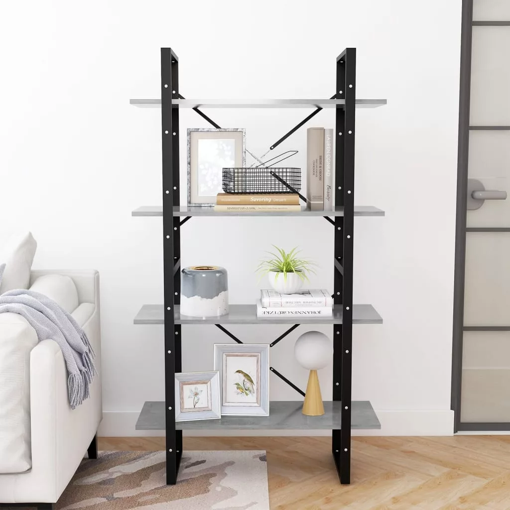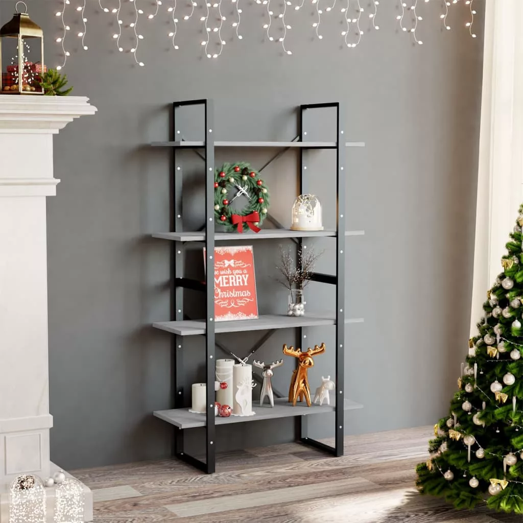 négyszintes betonszürke szerelt fa könyvszekrény 80x30x140 cm