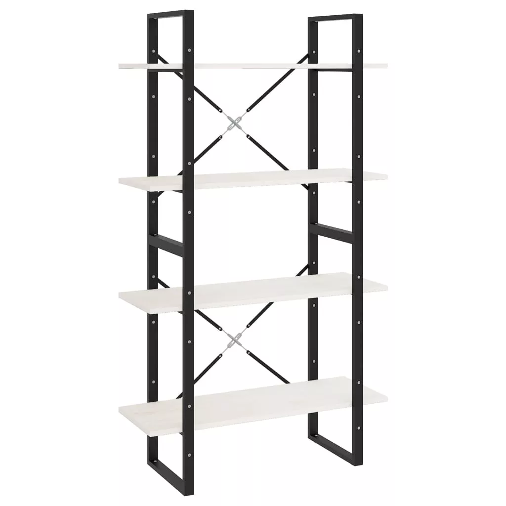 négyszintes fehér tömör fenyőfa könyvszekrény 80 x 30 x 140 cm