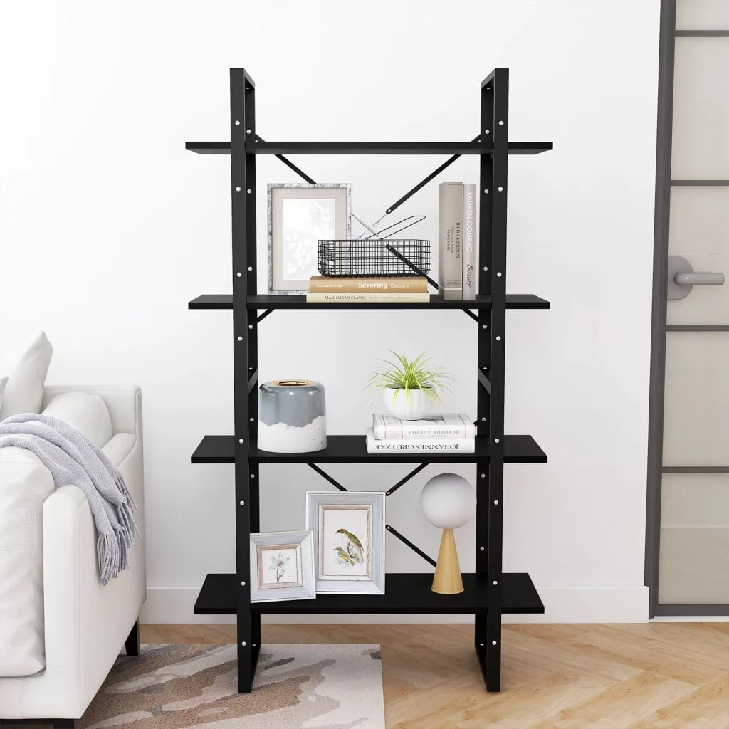 négyszintes fekete tömör fenyőfa könyvszekrény 80 x 30 x 140 cm
