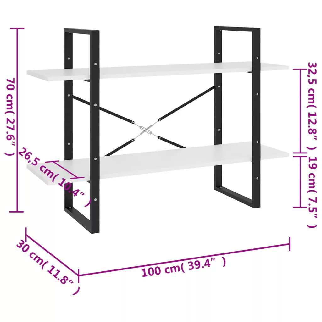 kétszintes fehér szerelt fa könyvszekrény 100 x 30 x 70 cm