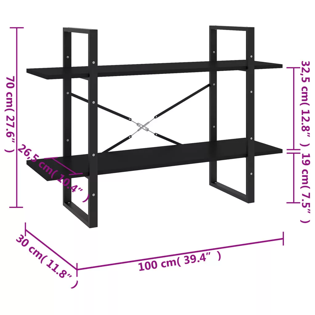 kétszintes fekete szerelt fa könyvszekrény 100 x 30 x 70 cm