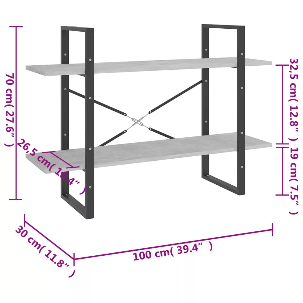 kétszintes betonszürke szerelt fa könyvszekrény 100x30x70 cm