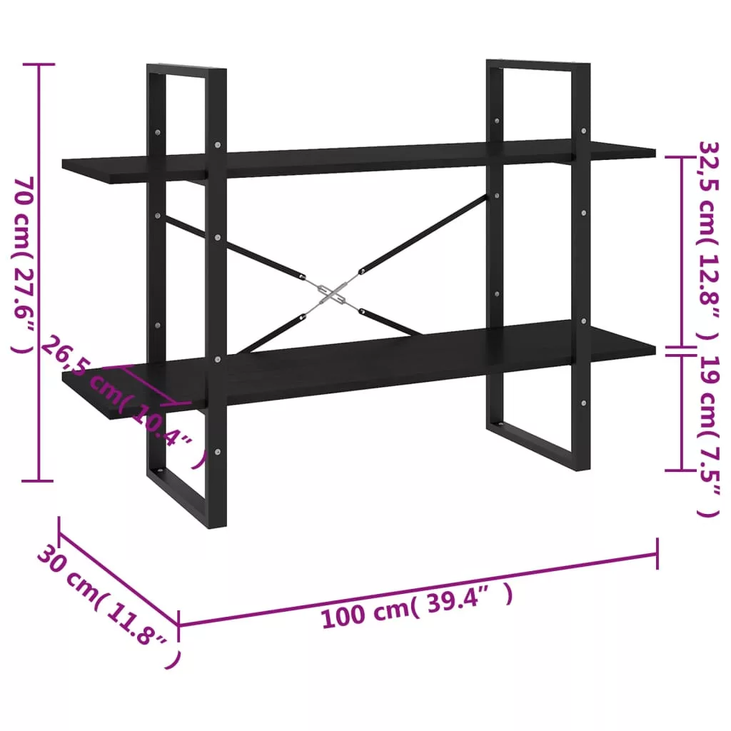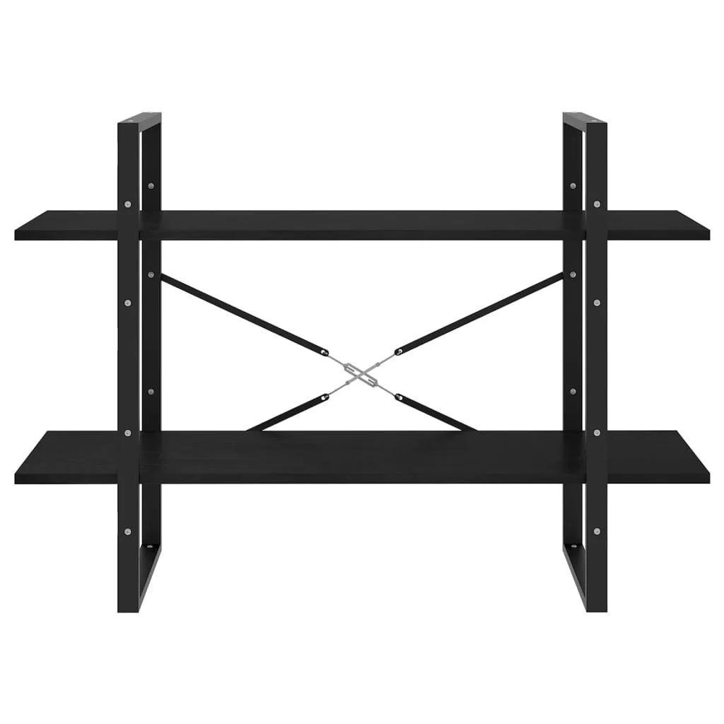 2-szintes fekete tömör fenyőfa könyvszekrény 100 x 30 x 70 cm