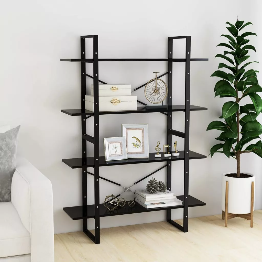 négyszintes fekete szerelt fa könyvszekrény 100 x 30 x 140 cm