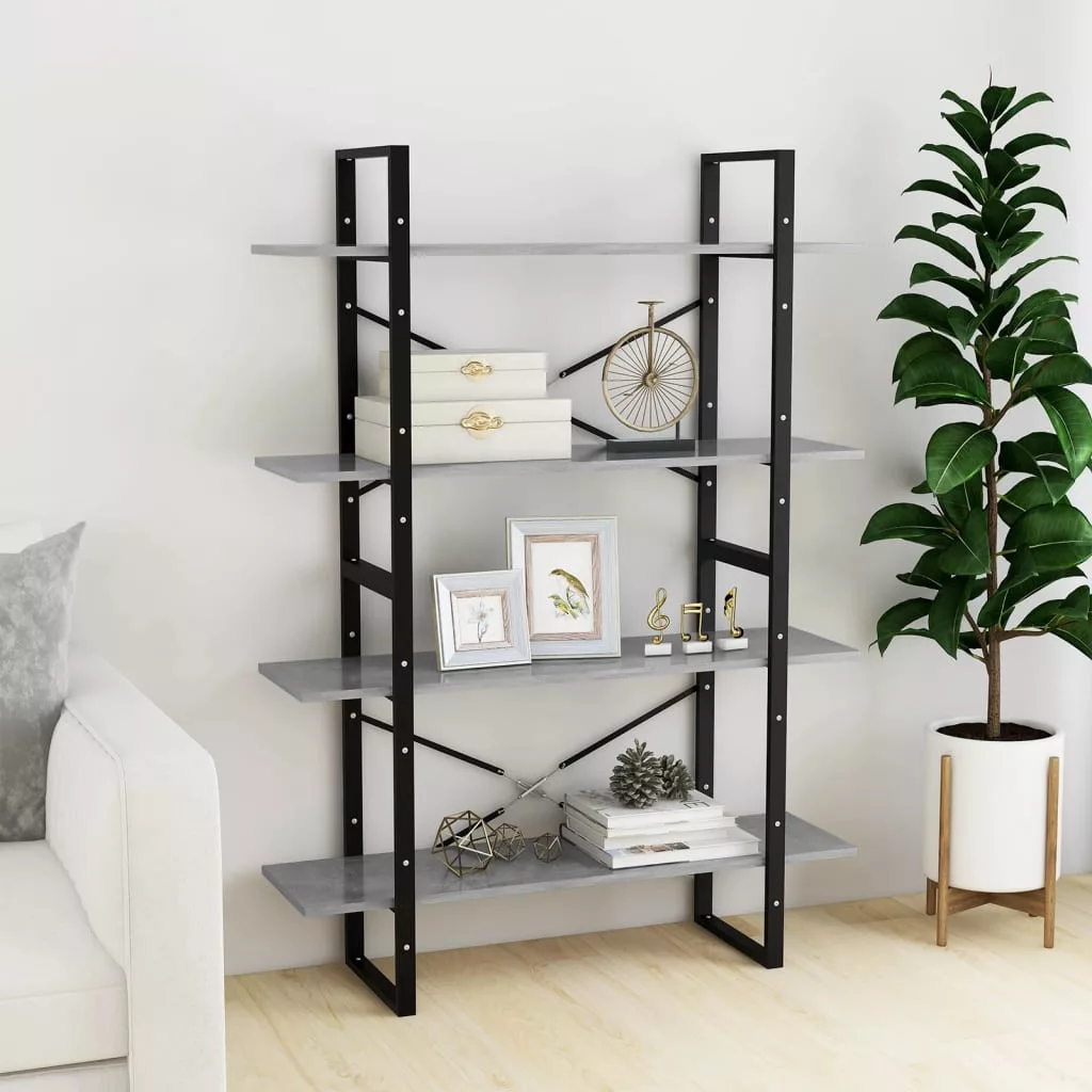 négyszintes betonszürke szerelt fa könyvszekrény 100x30x140 cm