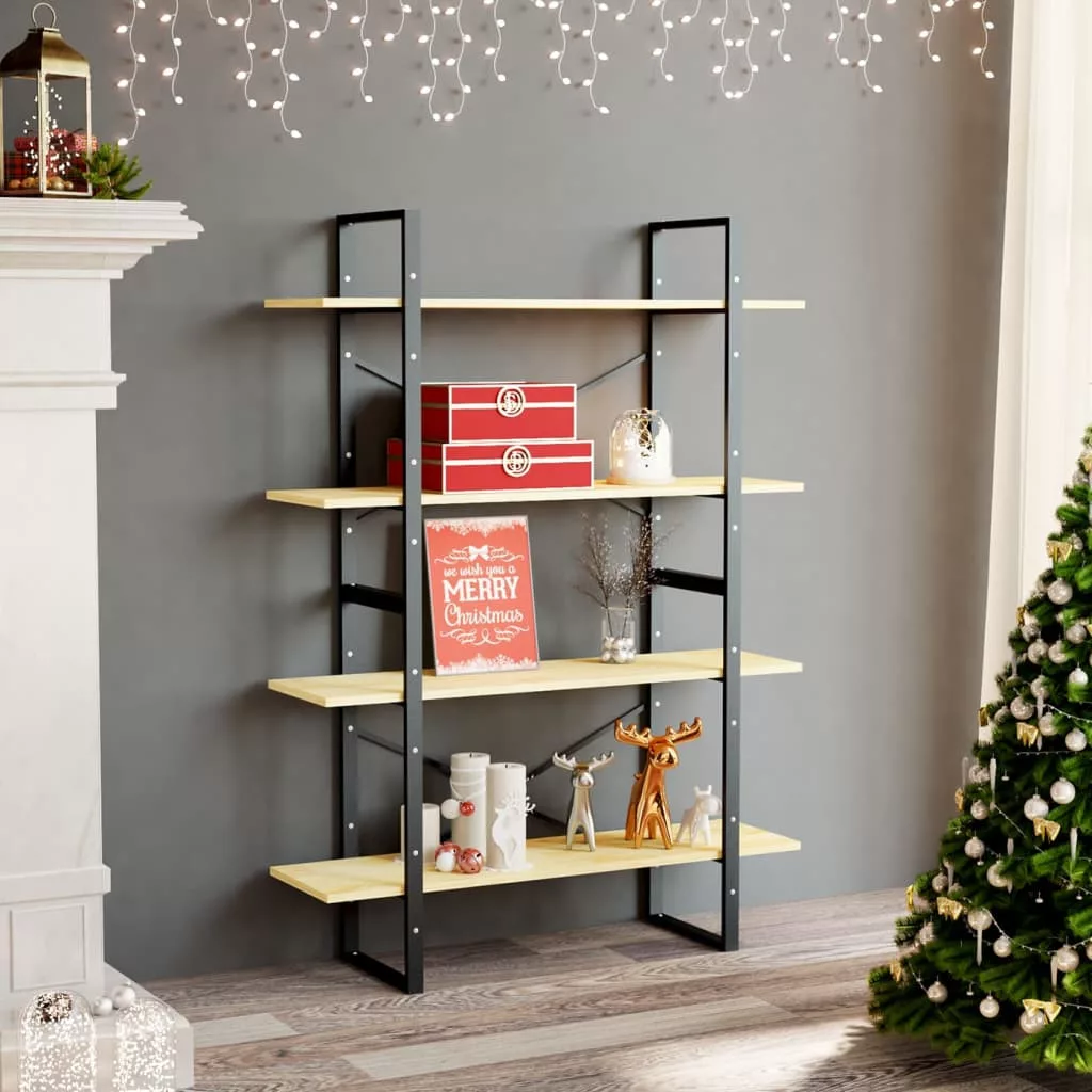 négyszintes barna tömör fenyőfa könyvszekrény 100 x 30 x 140 cm