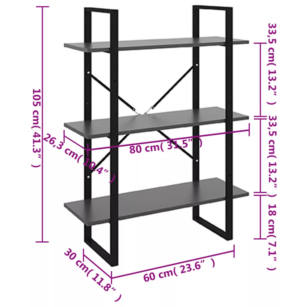 szürke forgácslap könyvszekrény 80 x 30 x 105 cm