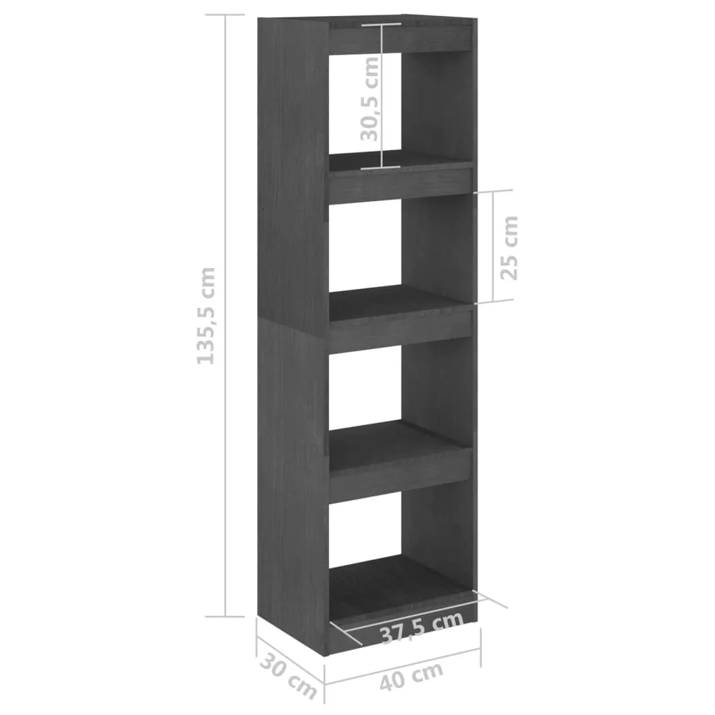 szürke fenyőfa könyvszekrény térelválasztó 40 x 30 x 135,5 cm