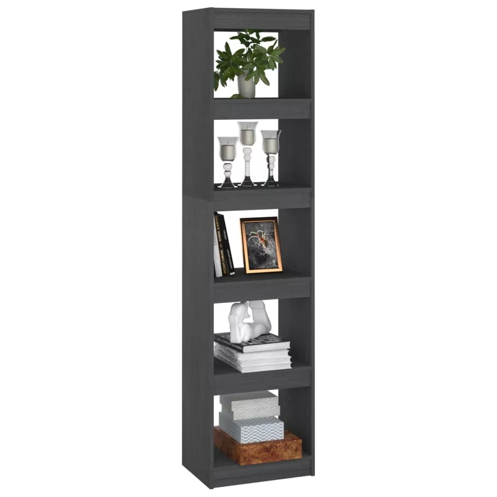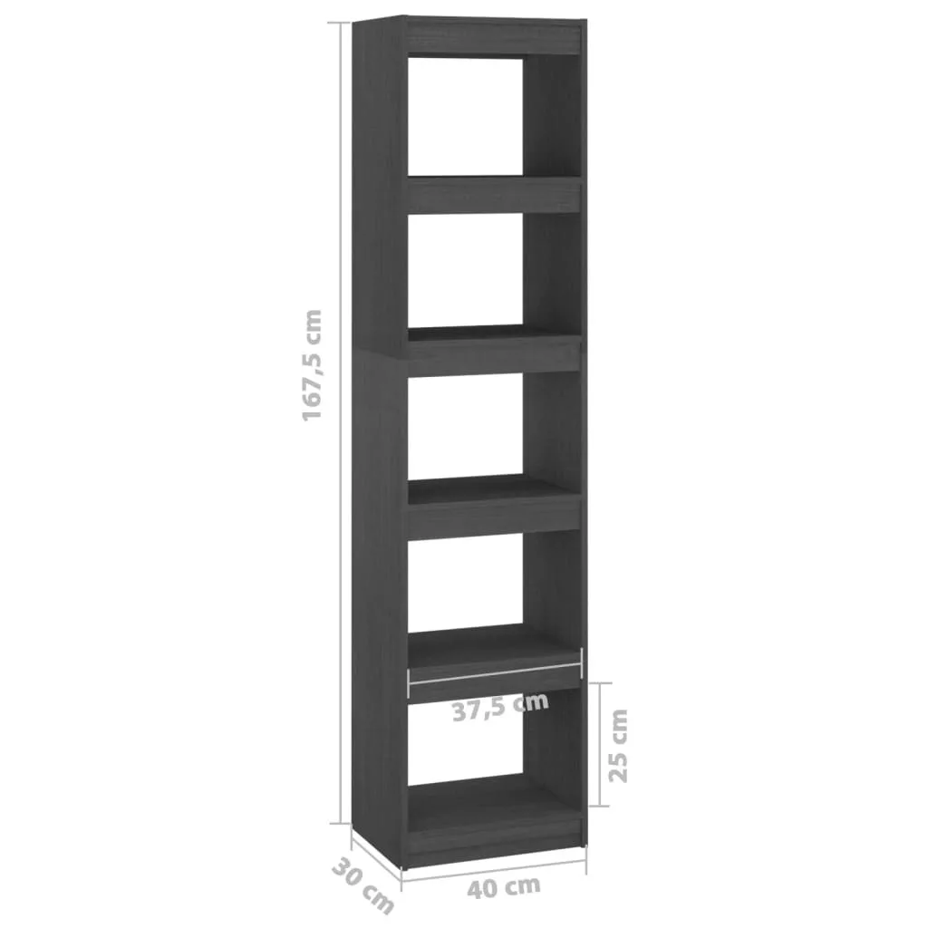 szürke tömör fenyőfa könyvszekrény/térelválasztó 40x30x167,5 cm