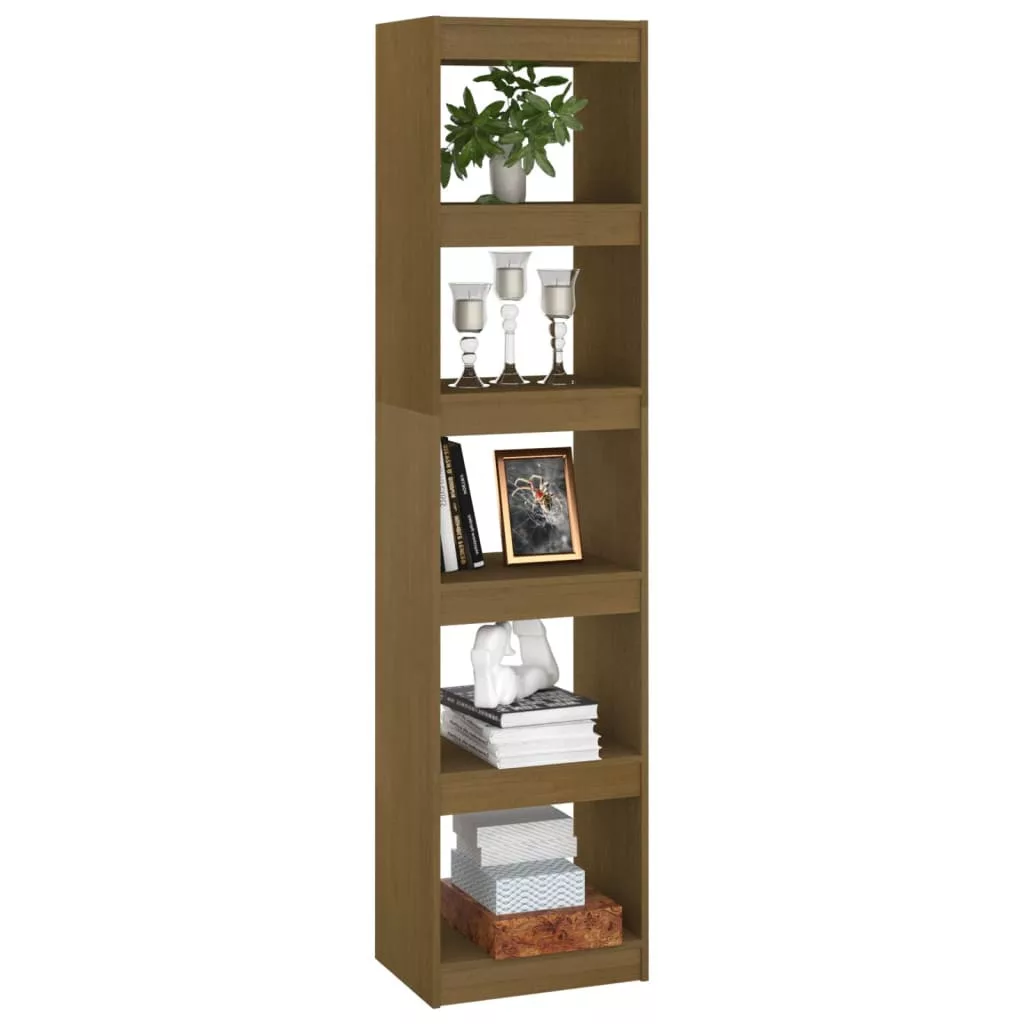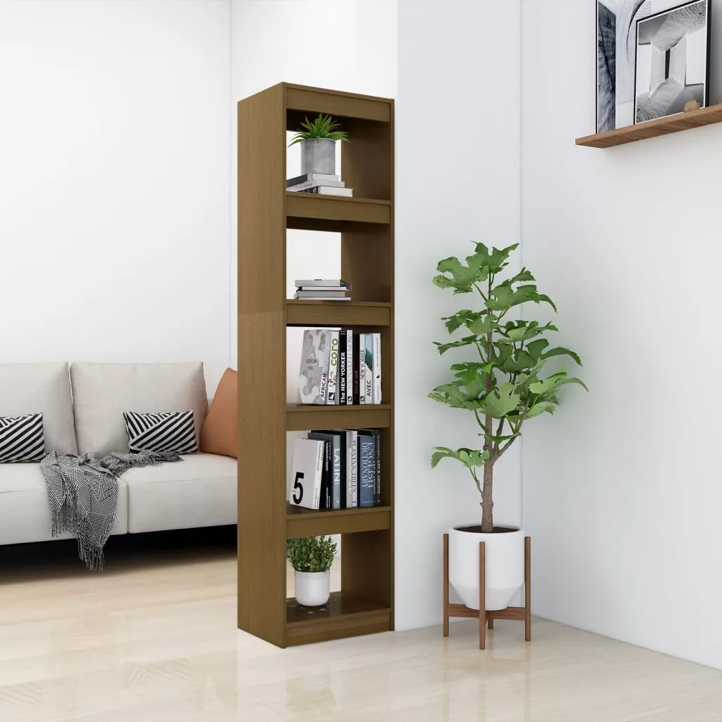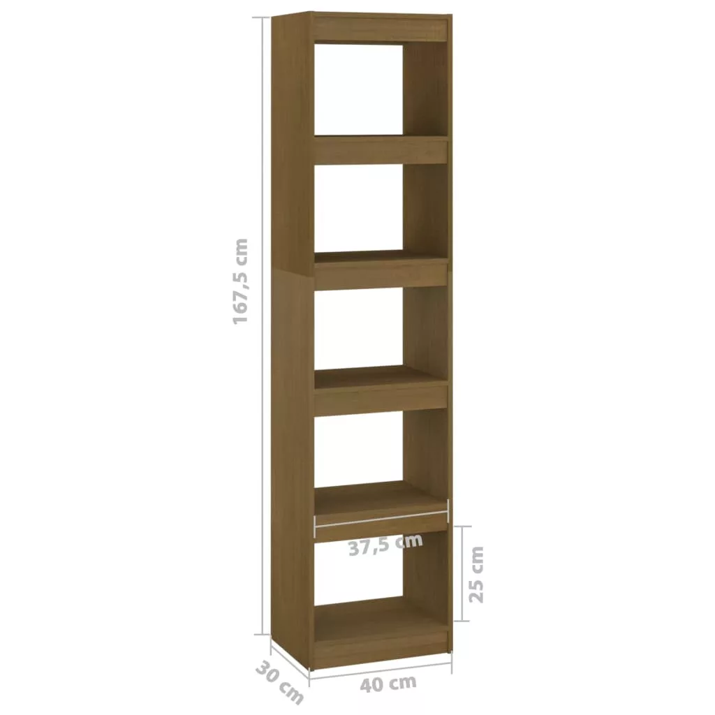 mézbarna tömör fenyőfa könyvszekrény/térelválasztó 40x30x167,5cm