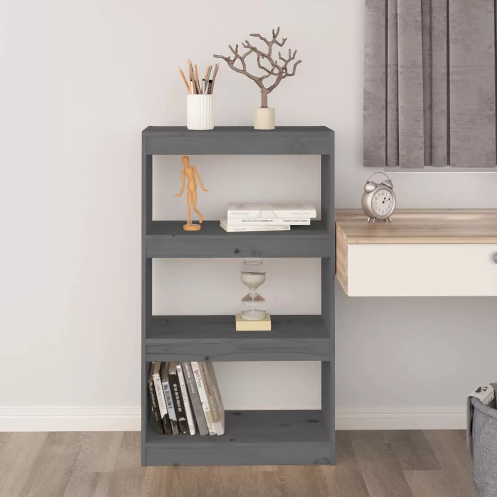szürke tömör fenyőfa könyvszekrény/térelválasztó 60x30x103,5 cm