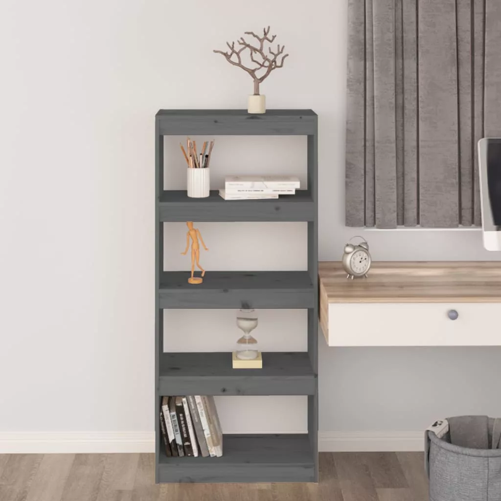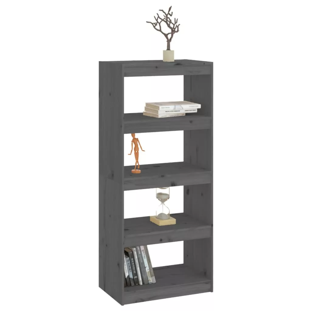 szürke tömör fenyőfa könyvszekrény/térelválasztó 60x30x135,5 cm