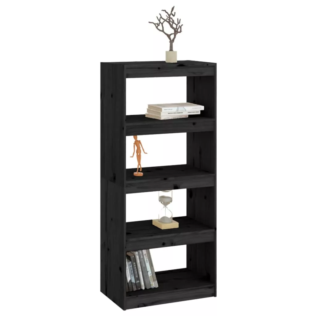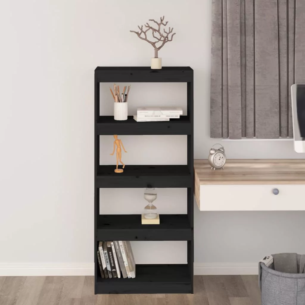 fekete tömör fenyőfa könyvszekrény/térelválasztó 60x30x135,5 cm