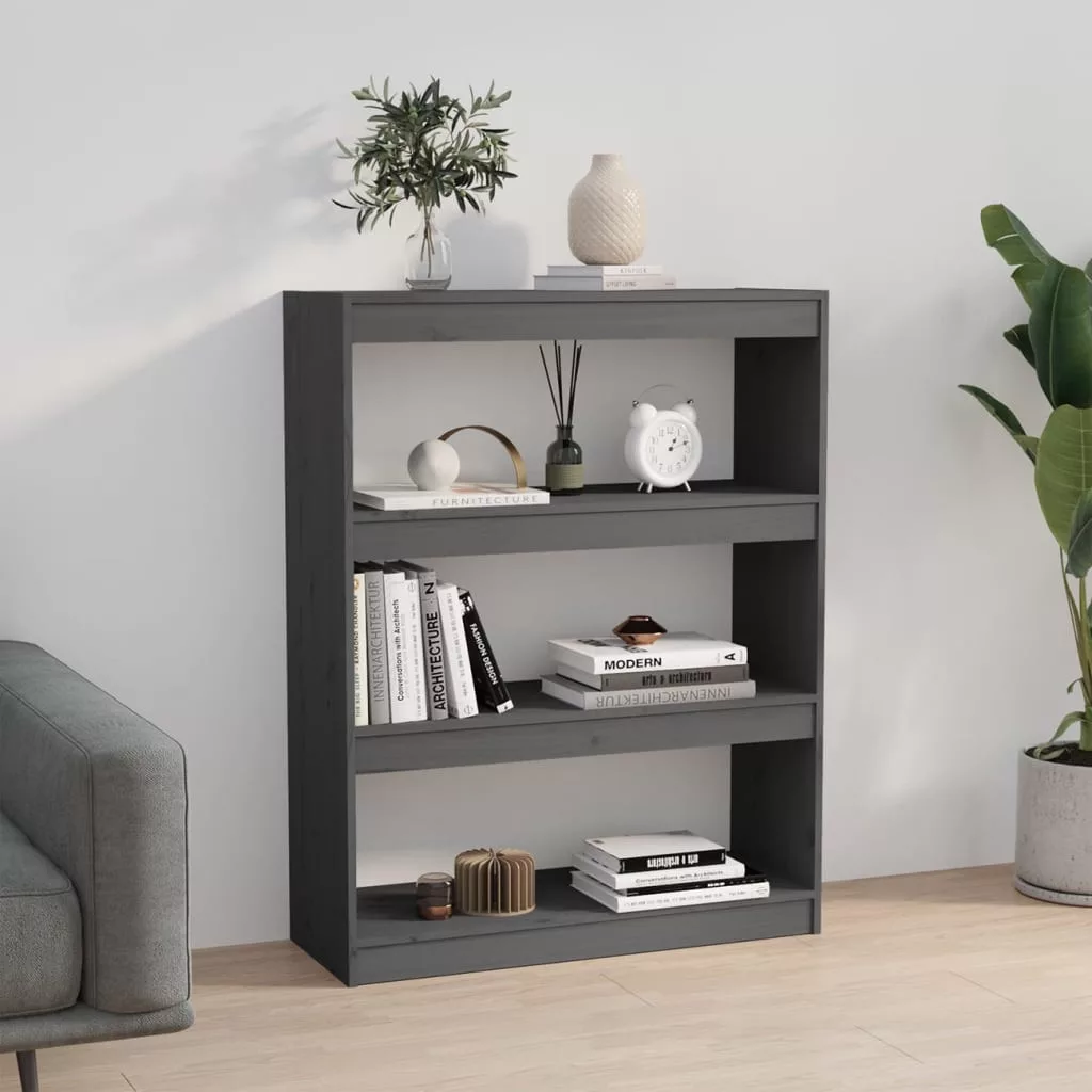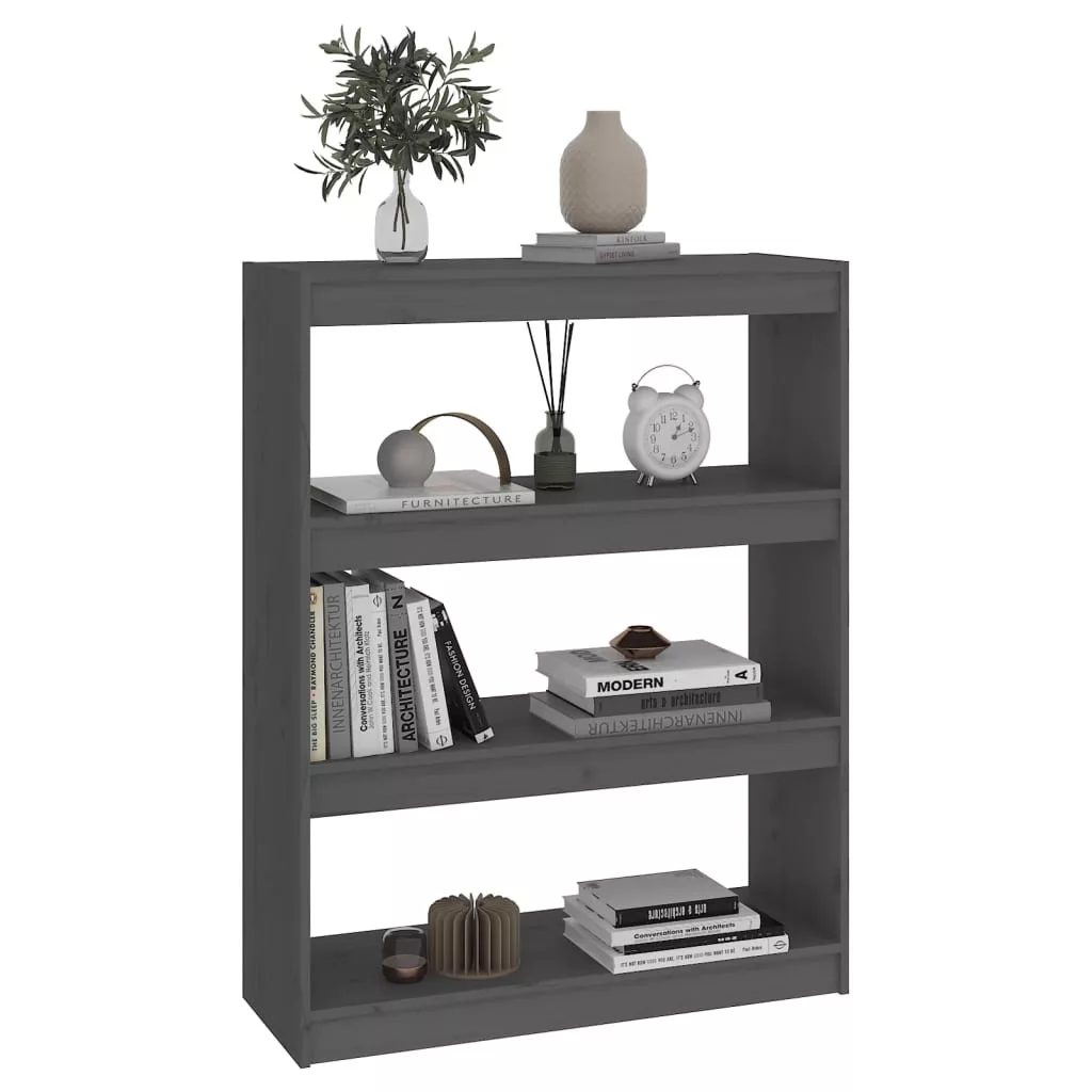 szürke tömör fenyőfa könyvszekrény/térelválasztó 80x30x103,5 cm