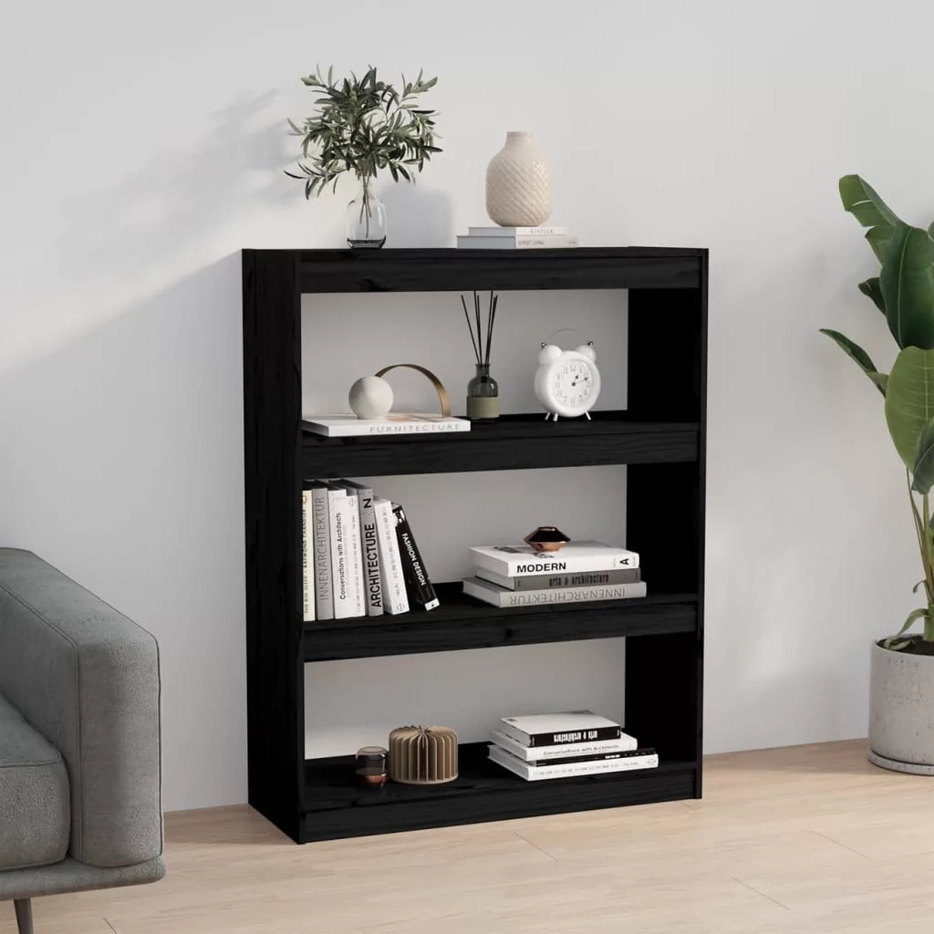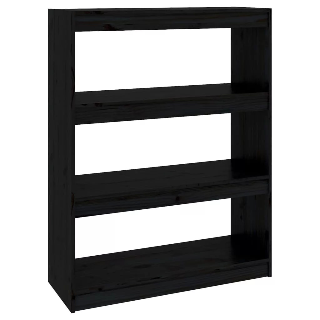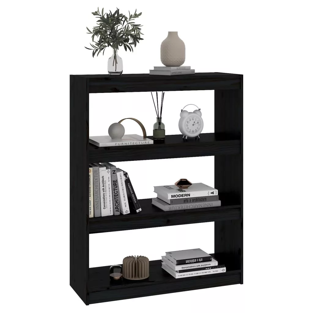 fekete tömör fenyőfa könyvszekrény/térelválasztó 80x30x103,5 cm