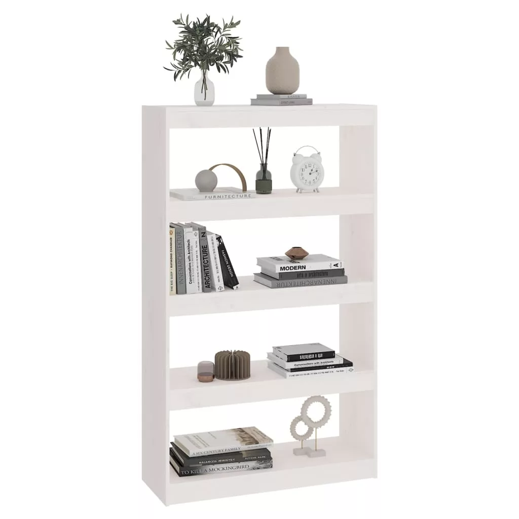 Letisztult, gyönyörű kidolgozásának köszönhetően ez a fából készült könyvszekrény dekoratív és praktikus kiegészítője lesz otthonának. Ez a könyvállvány tömör fenyőfából készült, így masszív és stabil. 4 nagy rekeszével ez a könyvespolc bőséges helyet biztosít magazinjai, könyvei, DVD-i, multimédiás eszközei és egyéb dísztárgyai kézközelben történő rendezett tárolásához. Emellett térelválasztóként is használható, így tökéletes választás előszobájába vagy bármely más helyiségbe. A könyvállvány nedves ruhával könnyen tisztítható.