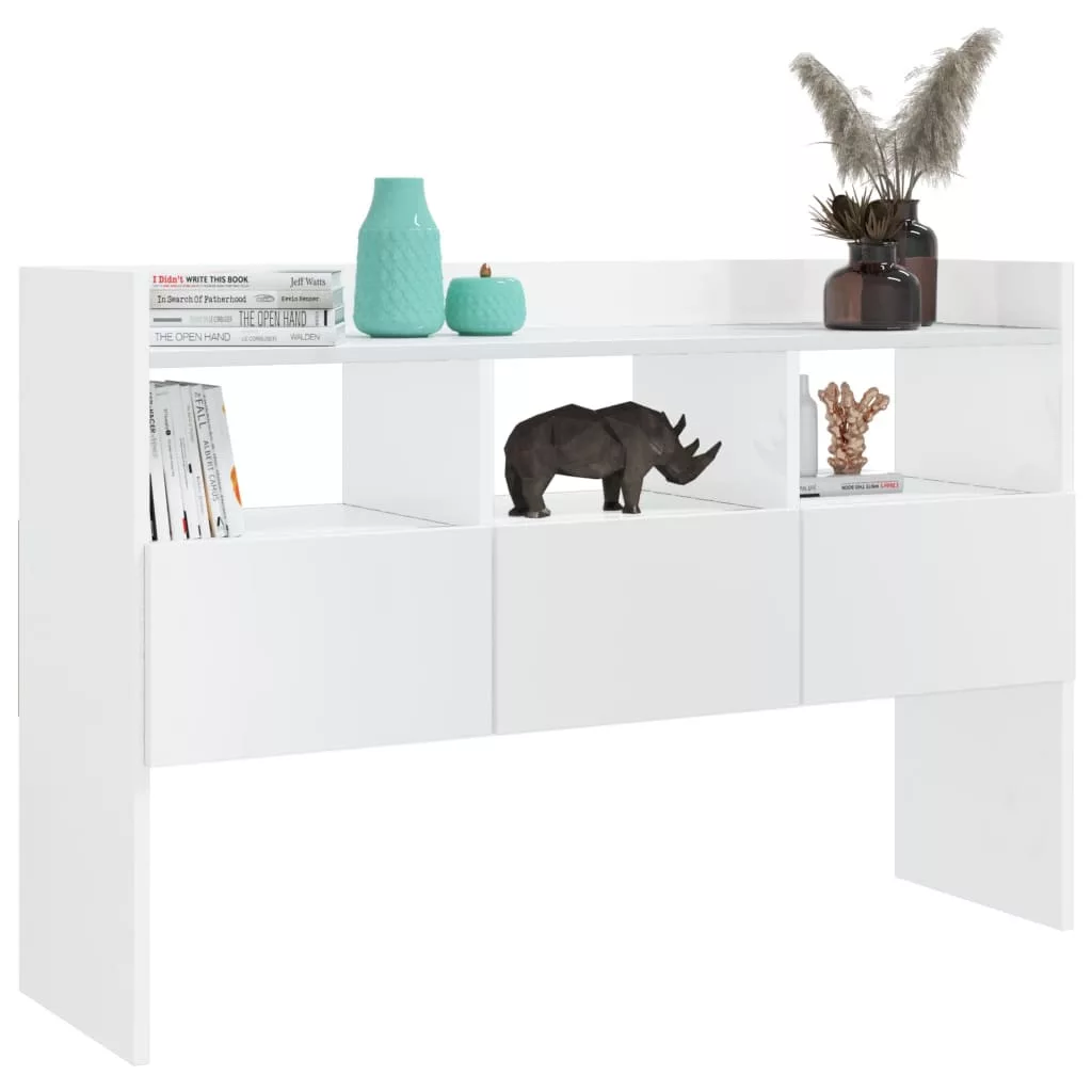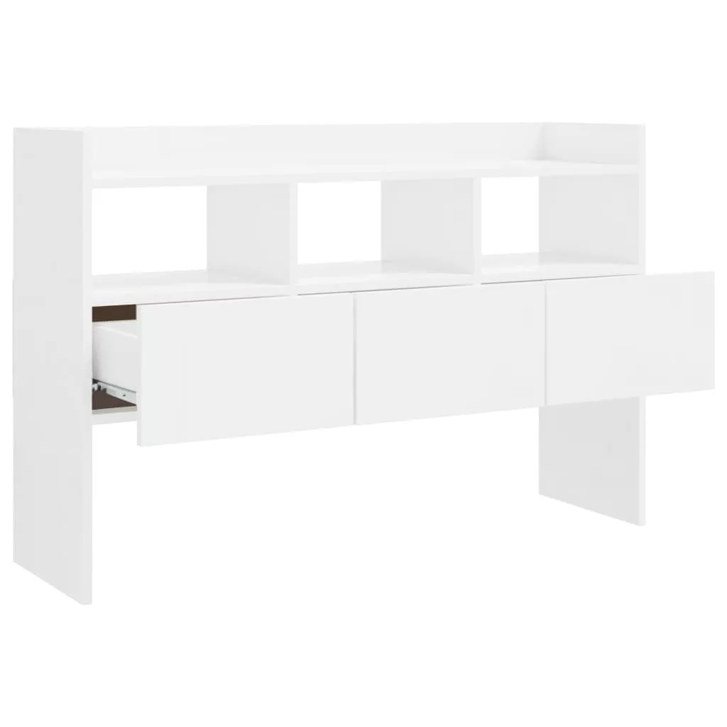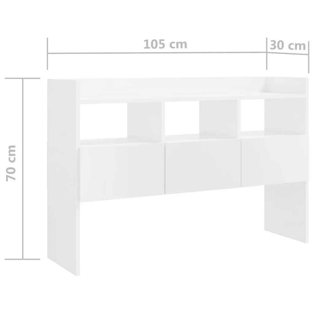 magasfényű fehér szerelt fa tálalószekrény 105 x 30 x 70 cm