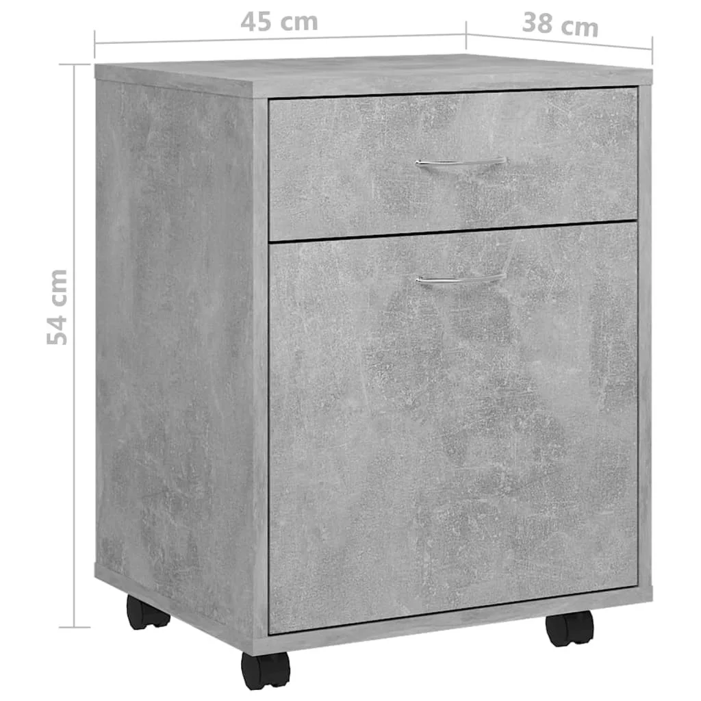 betonszürke szerelt fa kerekes szekrény 45 x 38 x 54 cm