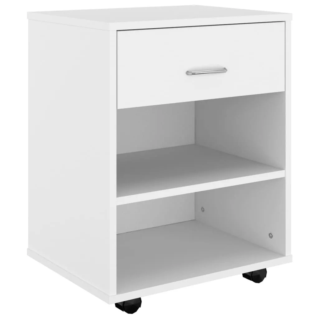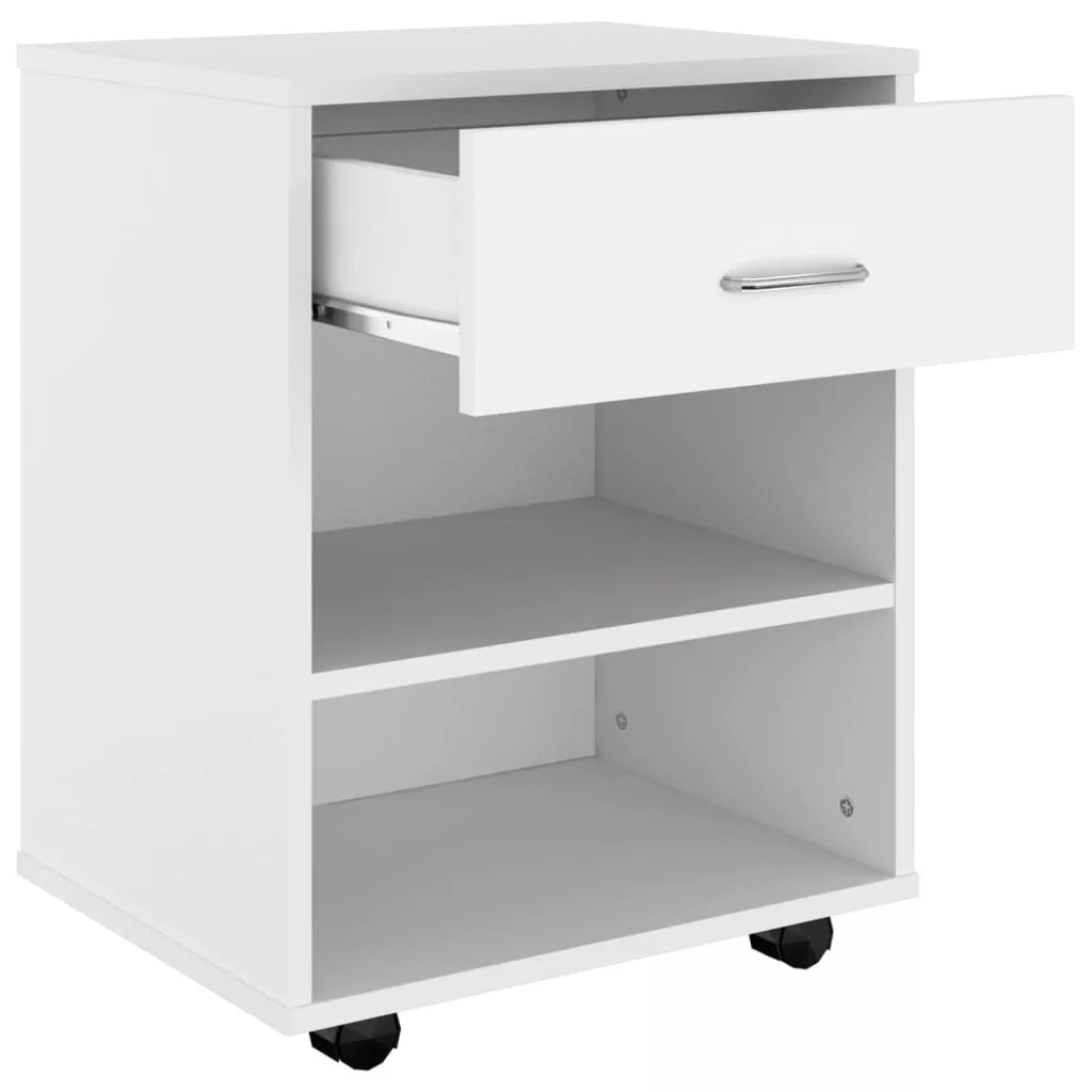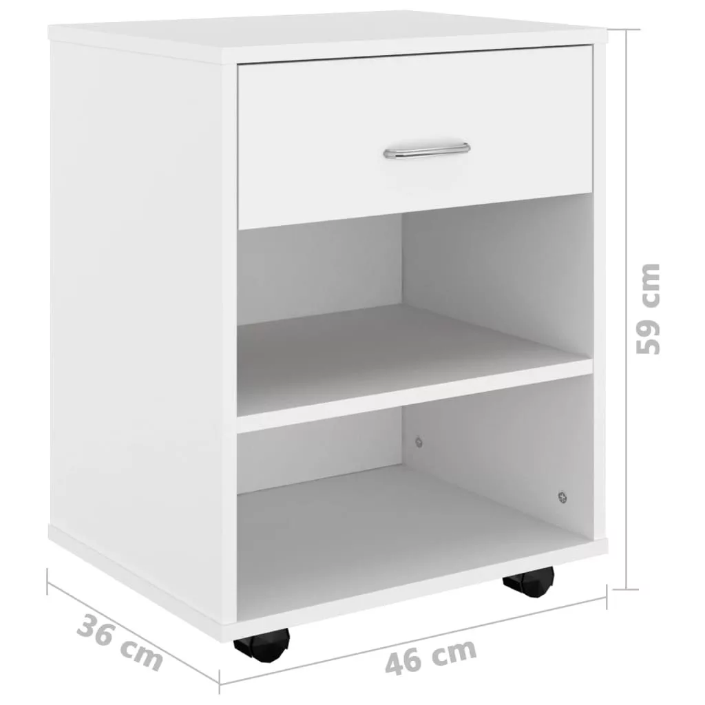 fehér szerelt fa kerekes szekrény 46 x 36 x 59 cm