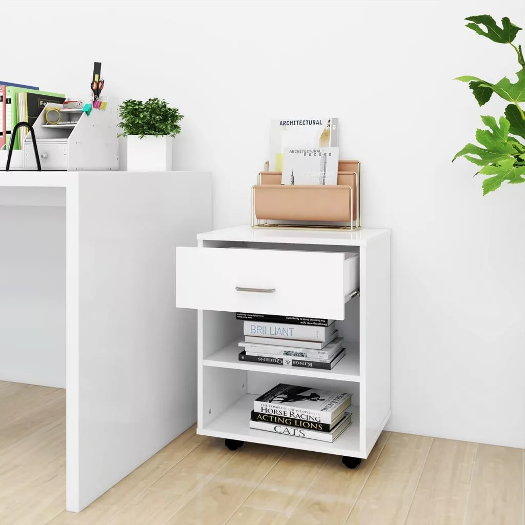 Attraktív és praktikus tervezésével ez a kerekes szekrény modern stílust csempész otthonába. A szekrény minőségi szerelt fából készült, amely tartós és könnyen tisztántartható. A téglalap alakú teteje használható nyomtató, papírok és egyéb kiegészítők tárolására az asztala alatt vagy mellett a helyspórolás érdekében. A kerekeknek köszönhetően, melyekből kettő rögzíthető, ez a kerekes szekrény rendkívül könnyen mozgatható és többfunkciós.