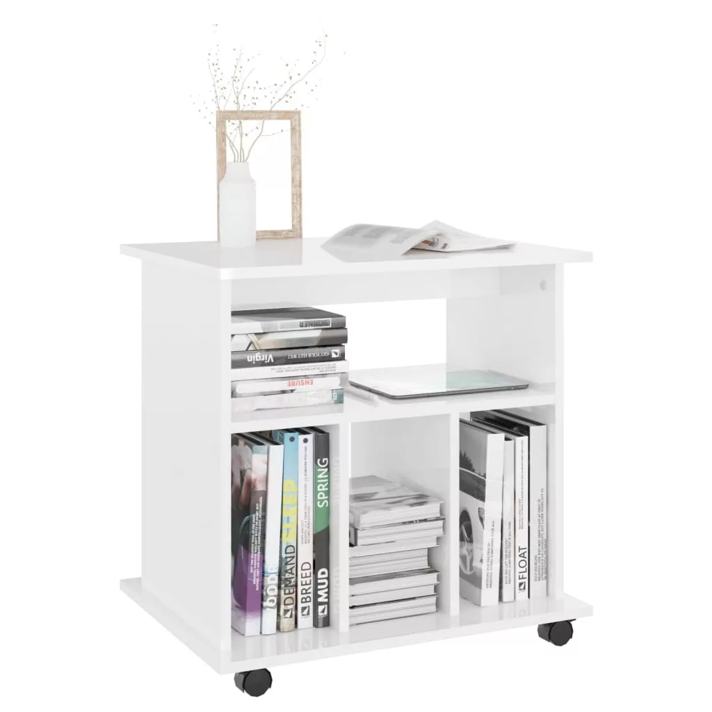 magasfényű fehér szerelt fa kerekes szekrény 60 x 45 x 60 cm