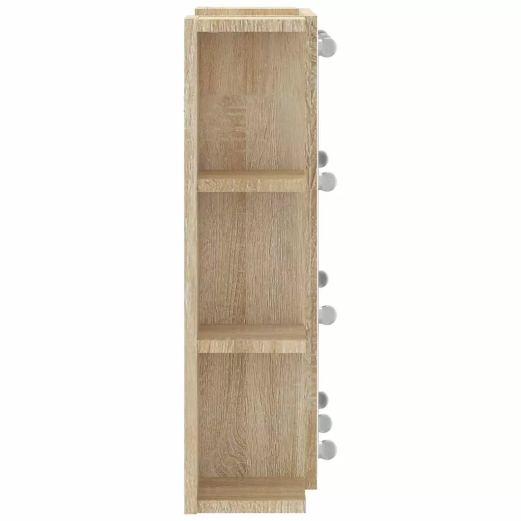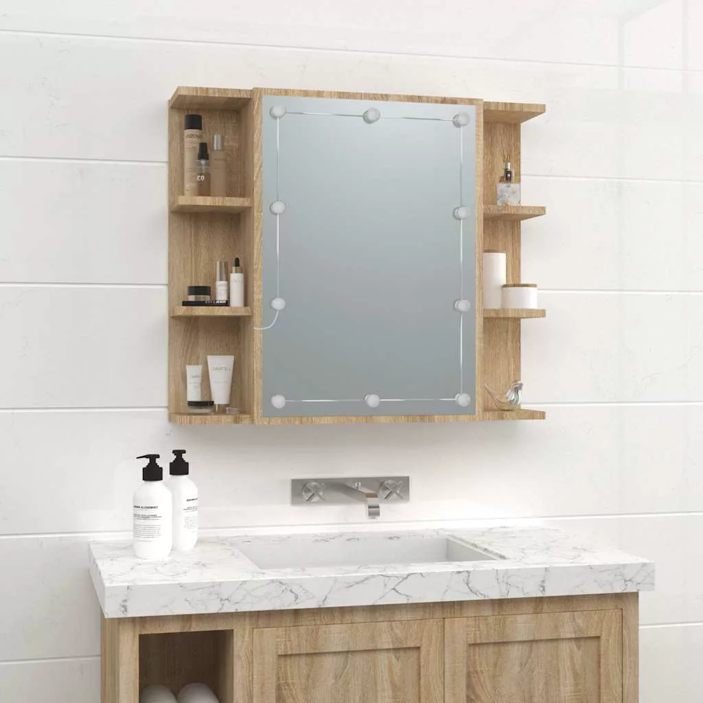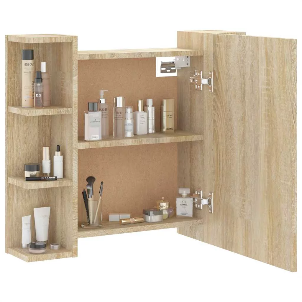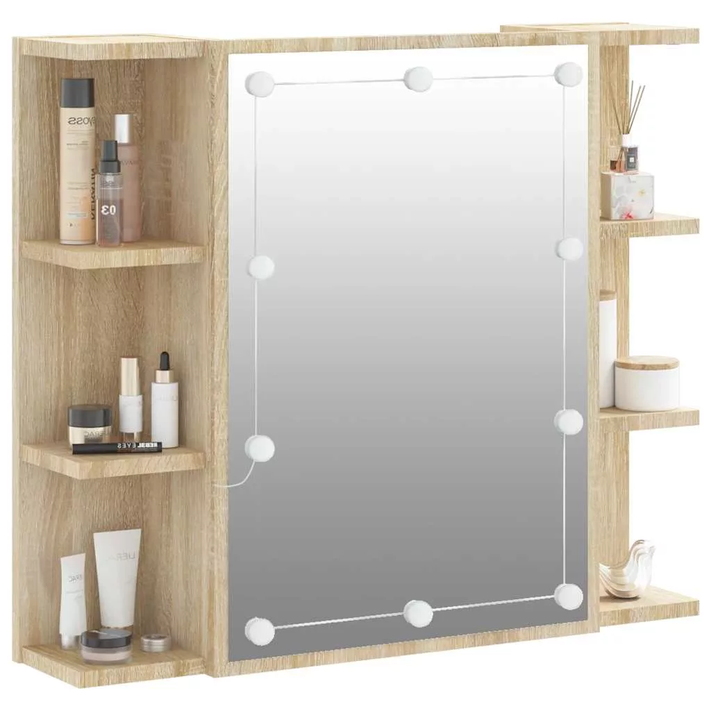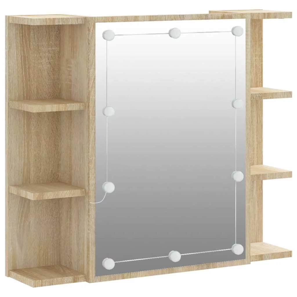 sonoma tölgy színű tükrös szekrény LED-ekkel 70 x 16,5 x 60 cm