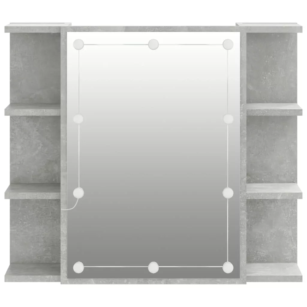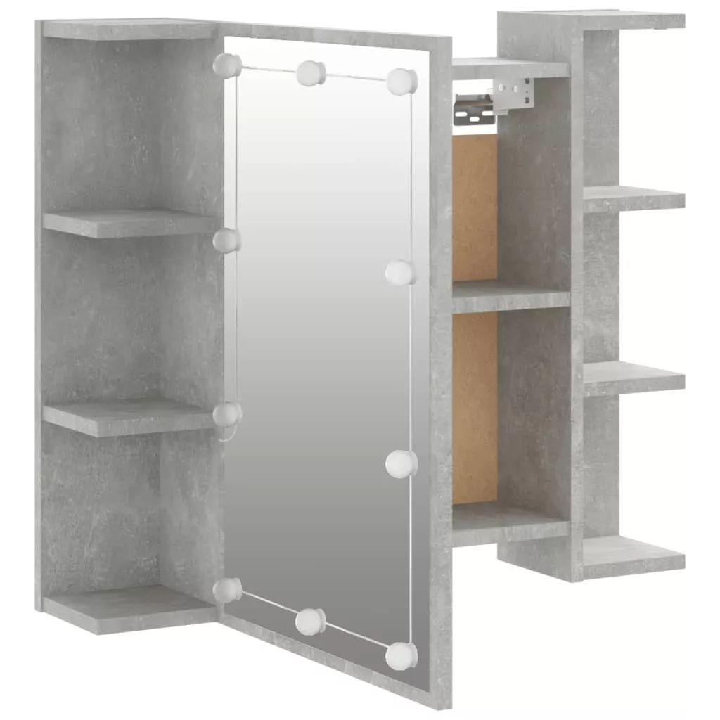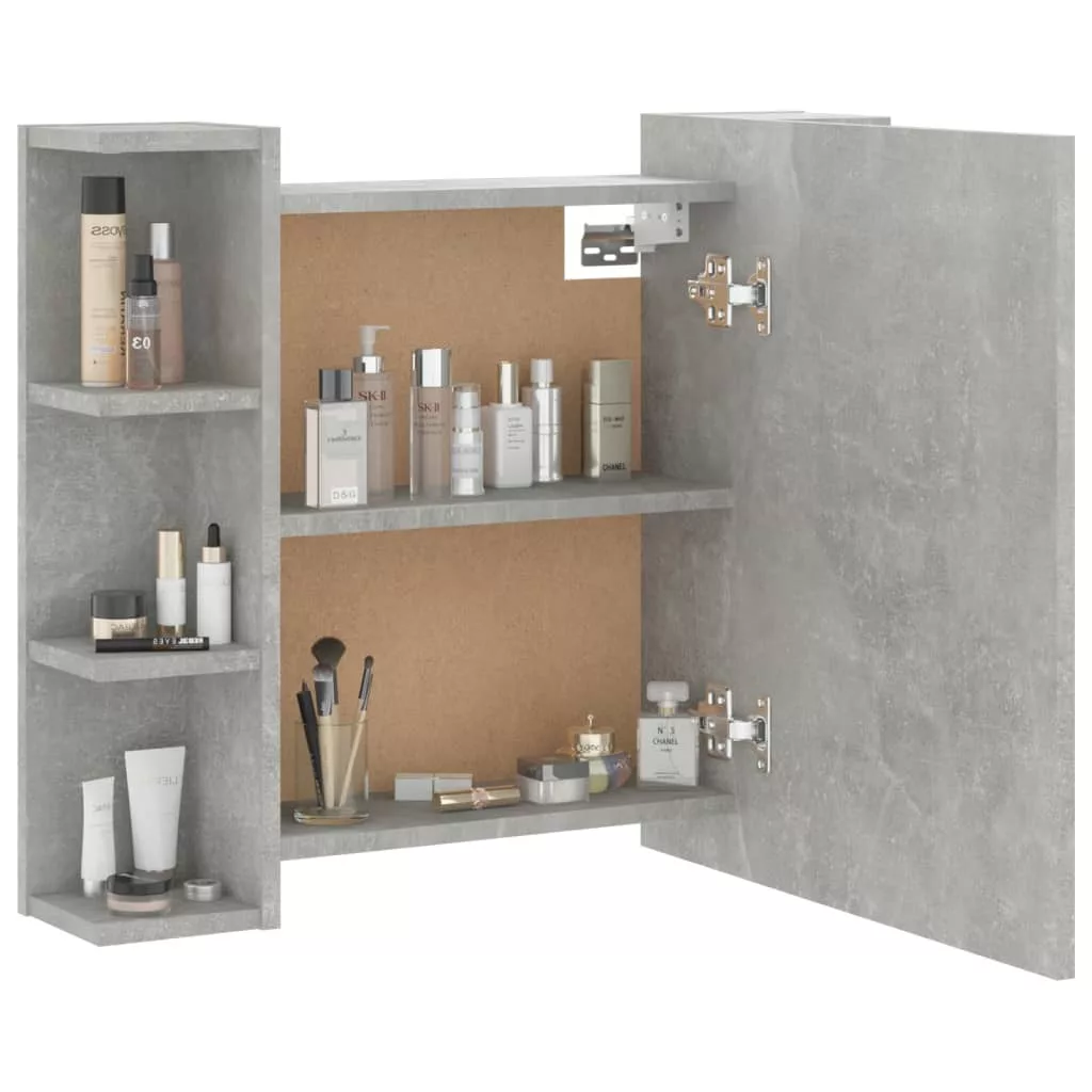 betonszürke tükrös szekrény LED-ekkel 70 x 16,5 x 60 cm