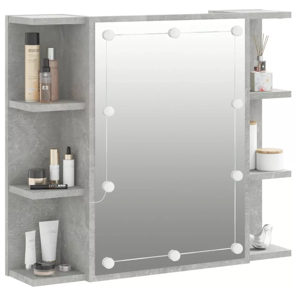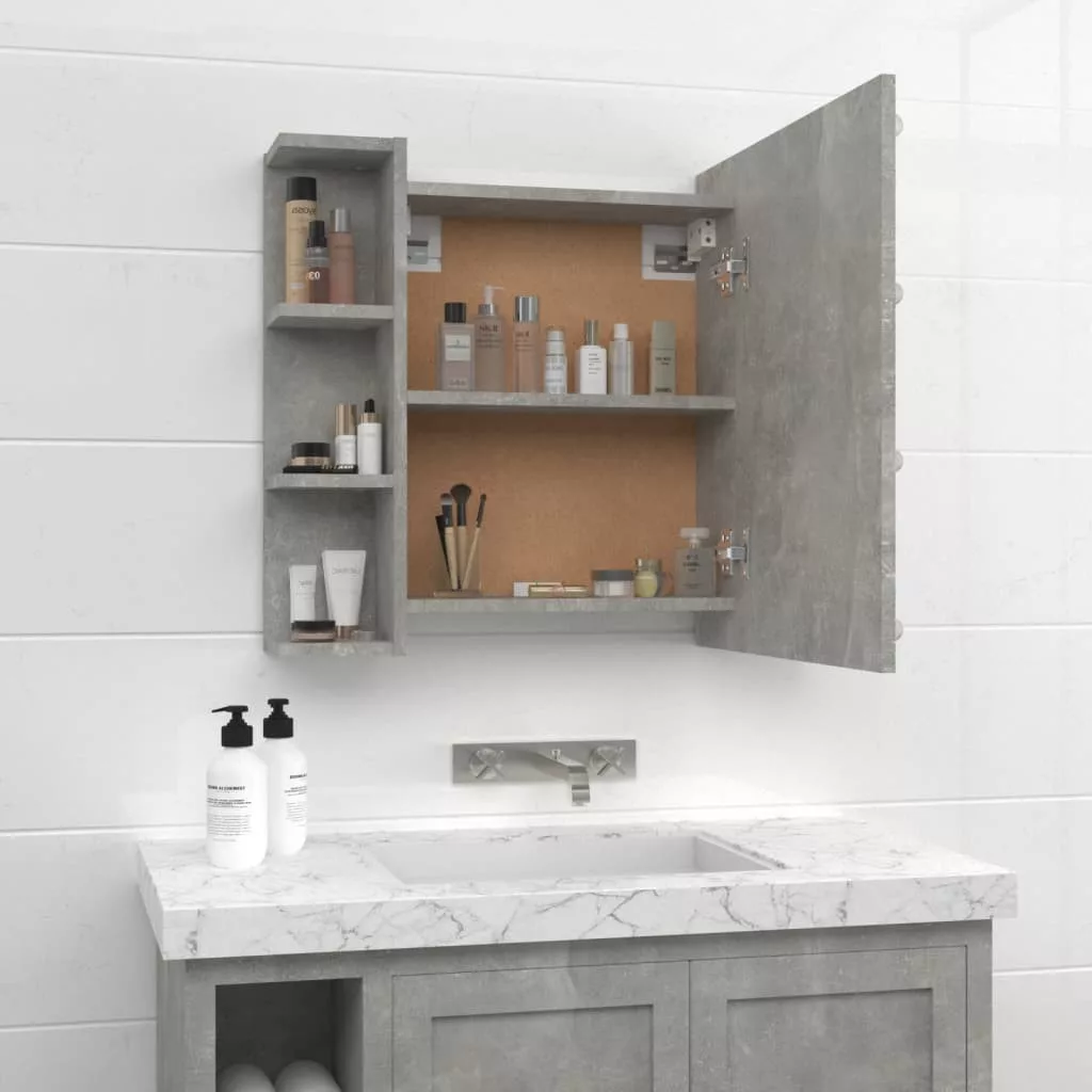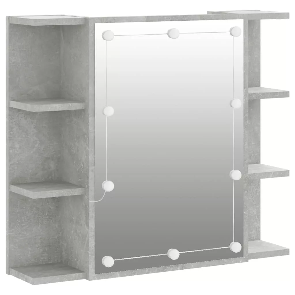 betonszürke tükrös szekrény LED-ekkel 70 x 16,5 x 60 cm