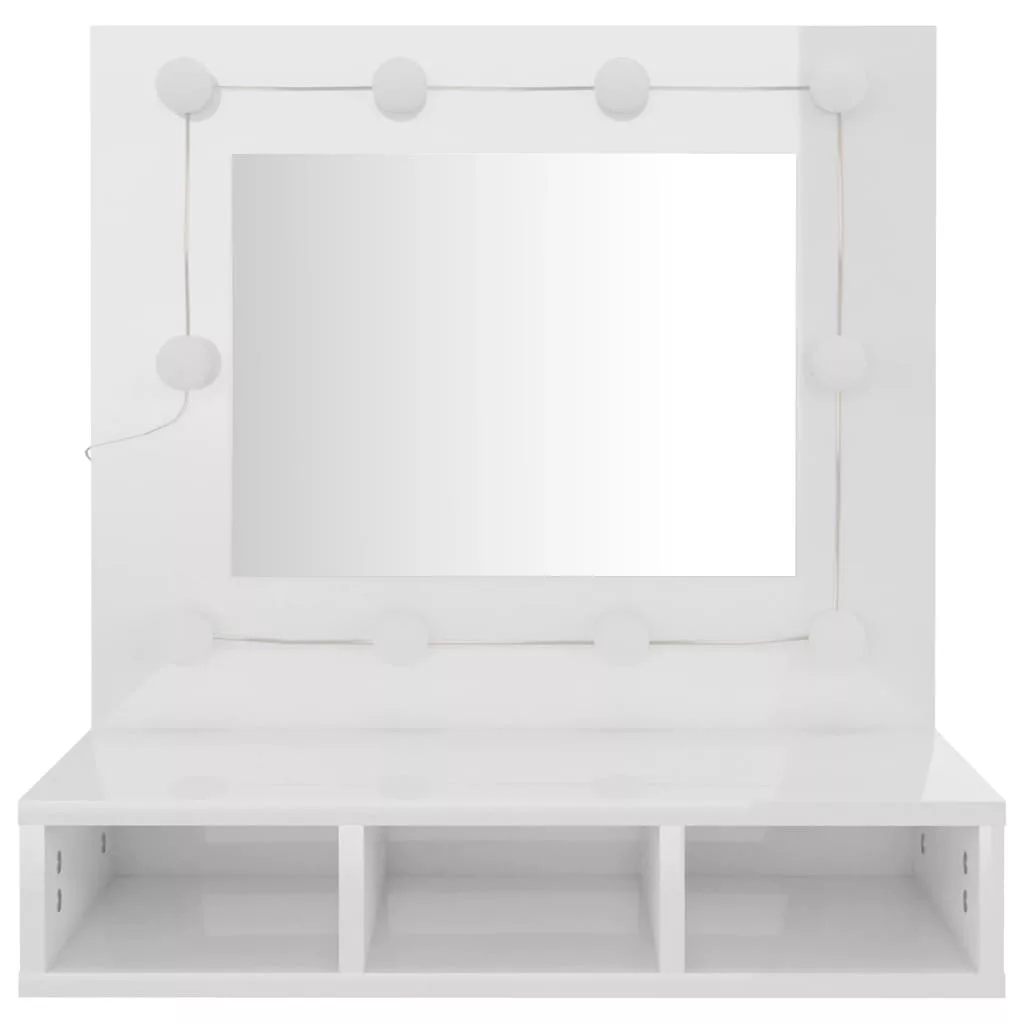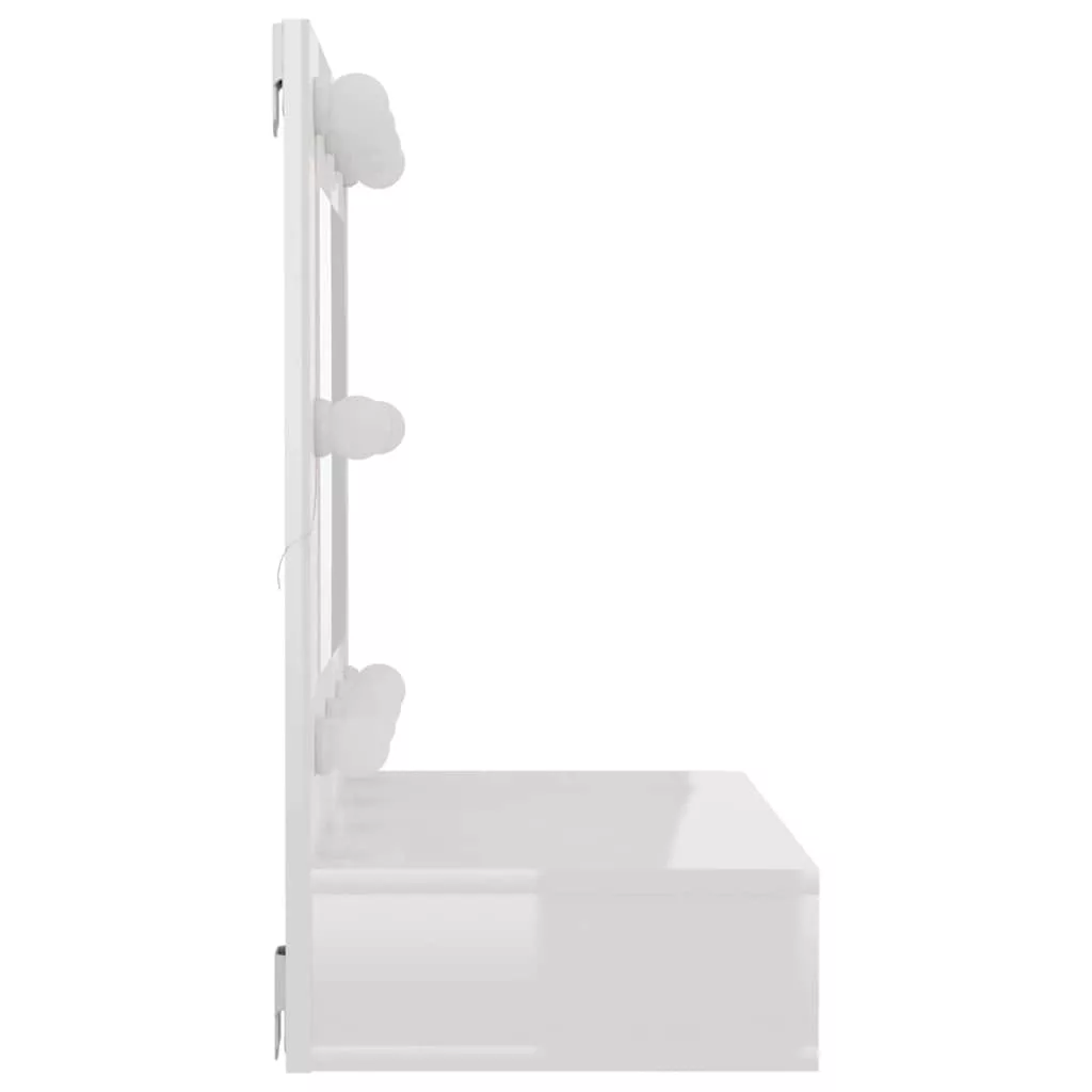 magasfényű fehér tükrös szekrény LED-ekkel 60 x 31,5 x 62 cm