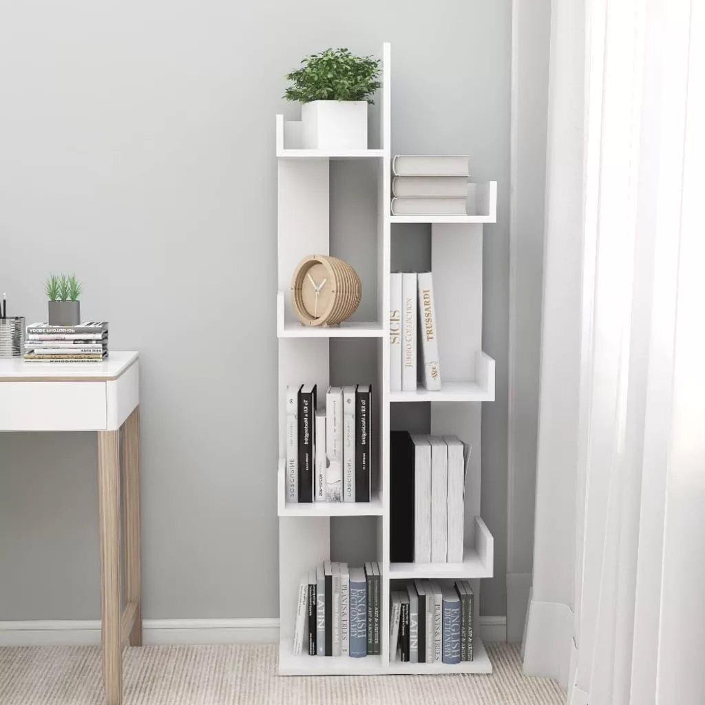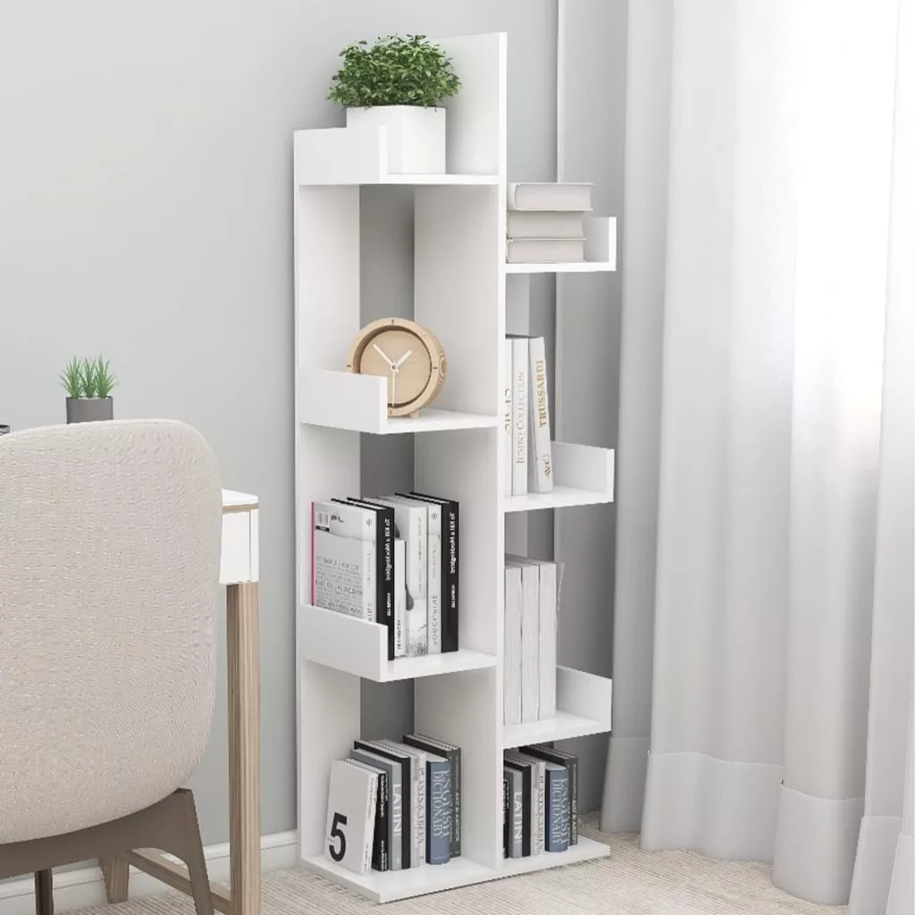 Helyezze el minden kincsét a könyves szekrény a tágas rekeszeibe, és hagyja, hogy a "fa" kivirágozzon! 8 rekesz áll rendelkezésre könyvek, CD-k, magazinok, dekorációk vagy cserepes növények rendezett tárolására. Ez a könyvespolc szerkezetének köszönhetően masszív és stabil. Az oldalfalak és a hátoldalon található 2 keskeny lemez védi a könyveket a leeséstől. Kompakt méretének köszönhetően a könyvespolc kevés helyet foglal, így olvasósarkot is alakíthat ki kis nappaliba, hálószobába és irodába. Emellett a könyvállvány nedves ruhával könnyen tisztítható.