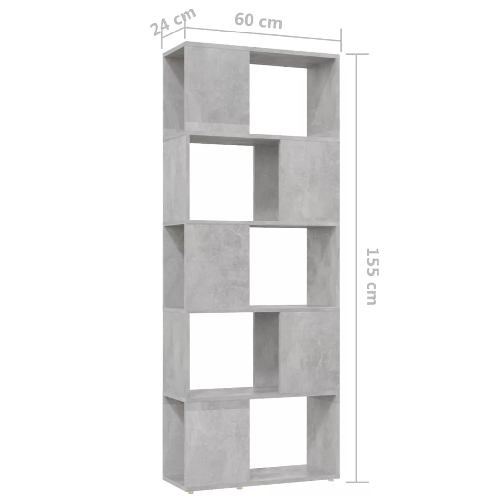 betonszürke térelválasztó könyvszekrény 60 x 24 x 155 cm