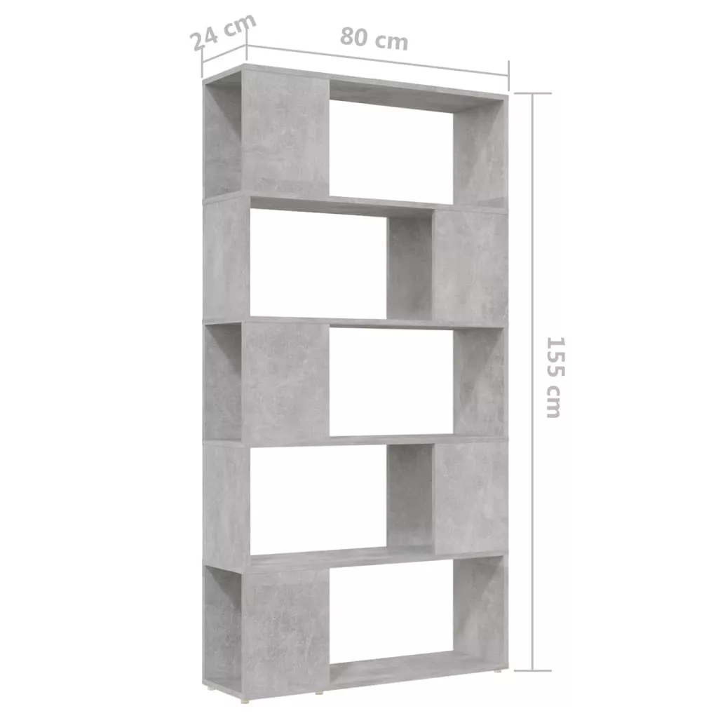 betonszürke térelválasztó könyvszekrény 80 x 24 x 155 cm