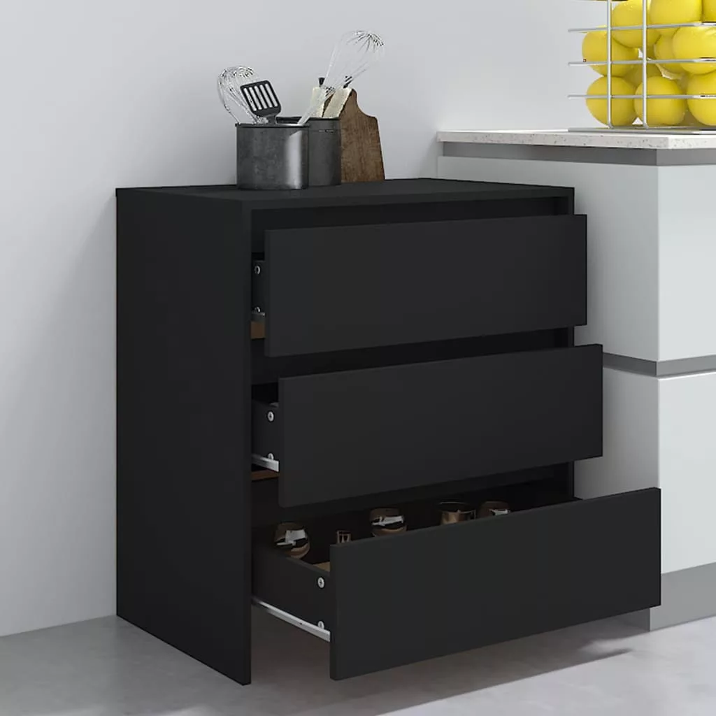 fekete szerelt fa tálalószekrény 70x41x75 cm