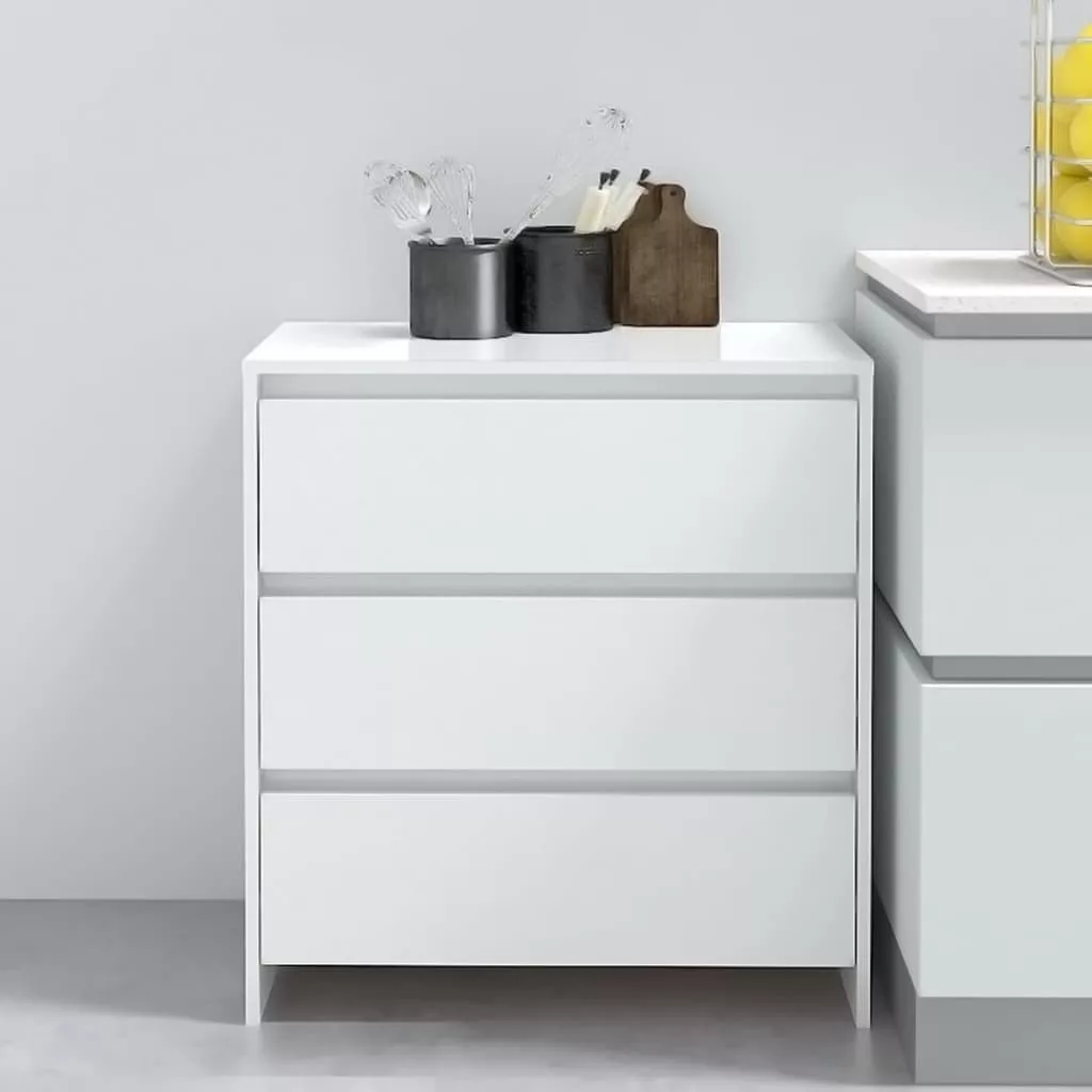 magasfényű fehér szerelt fa tálalószekrény 70x41x75 cm