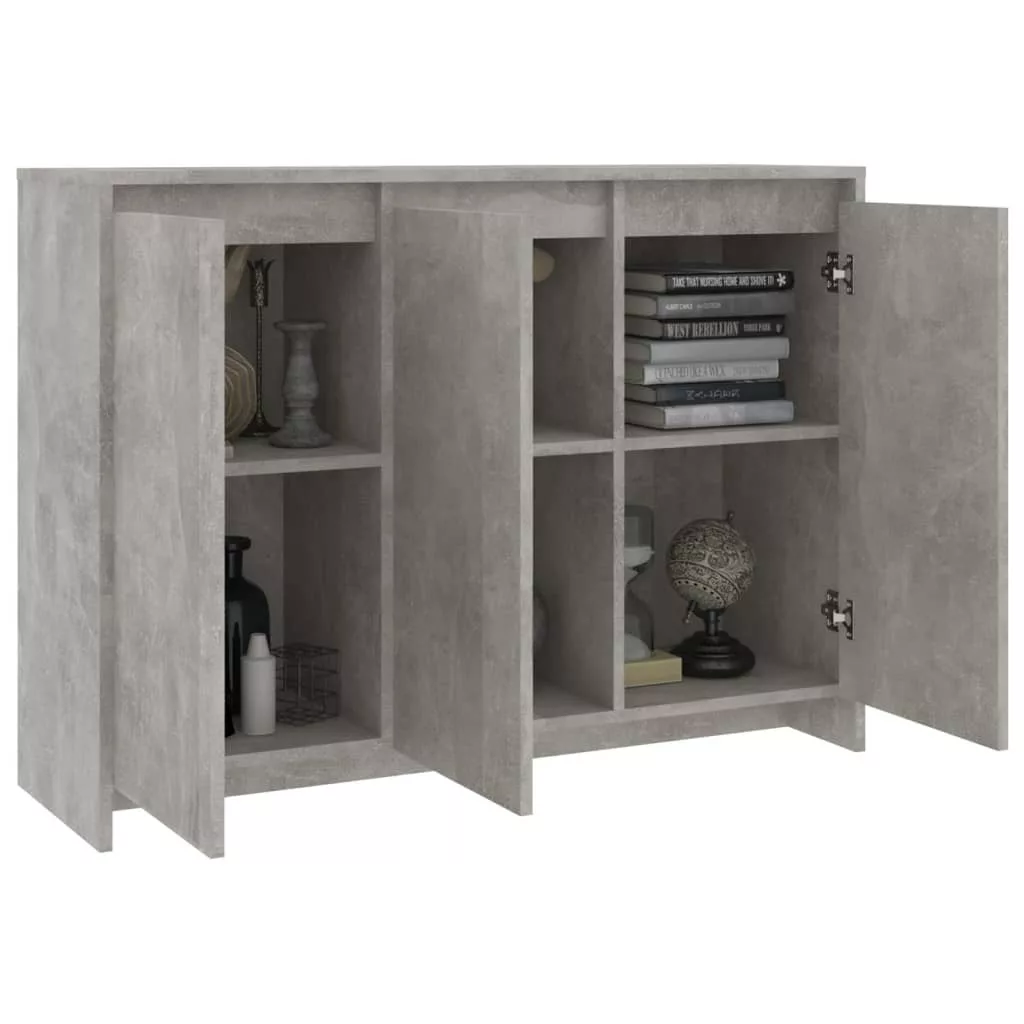 betonszürke szerelt fa tálalószekrény 102 x 33 x 75 cm