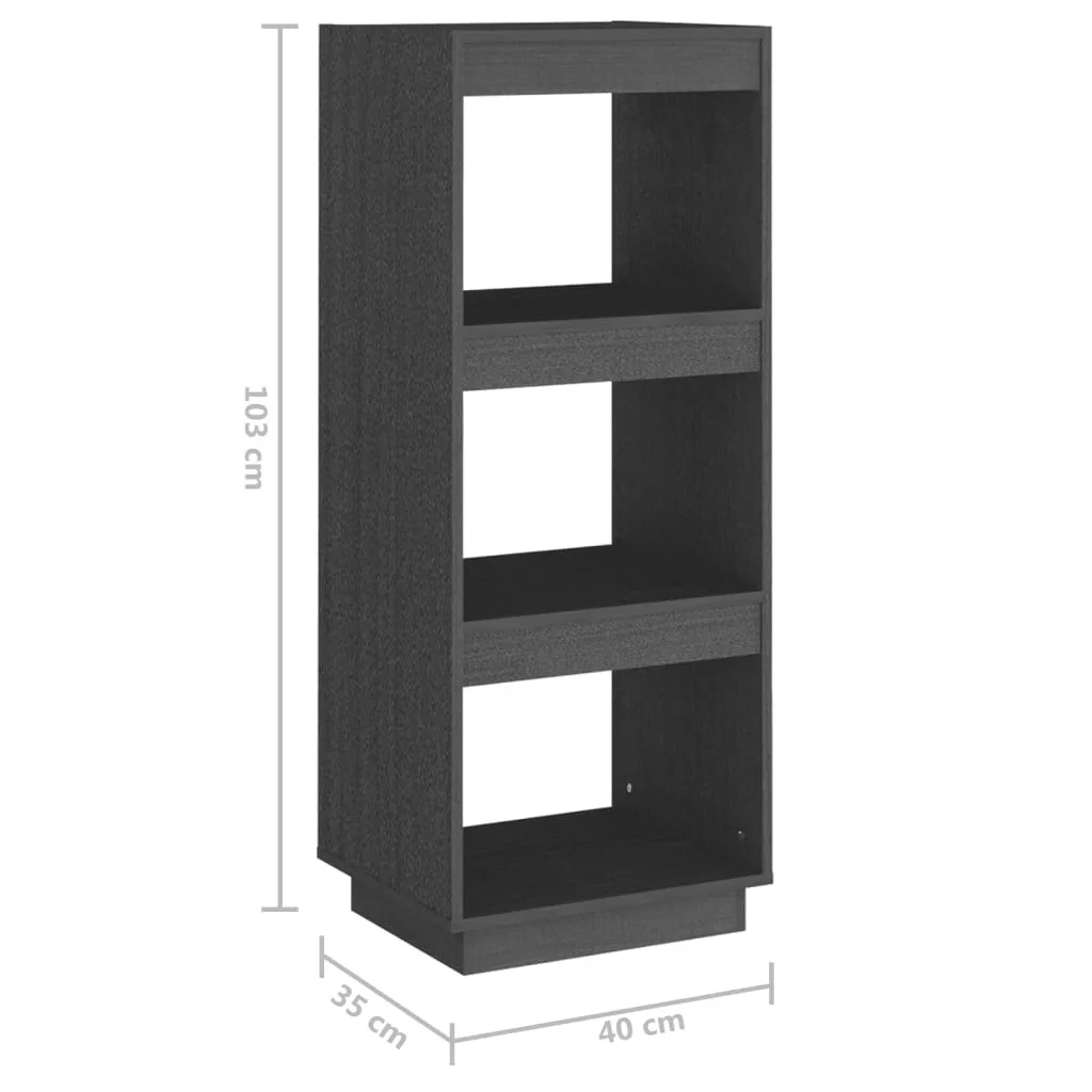 szürke tömör fenyőfa könyvszekrény/térelválasztó 40x35x103 cm