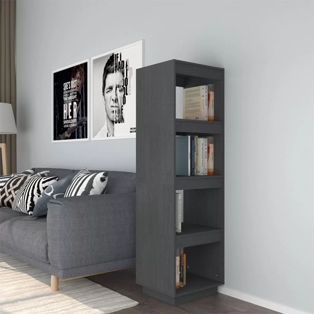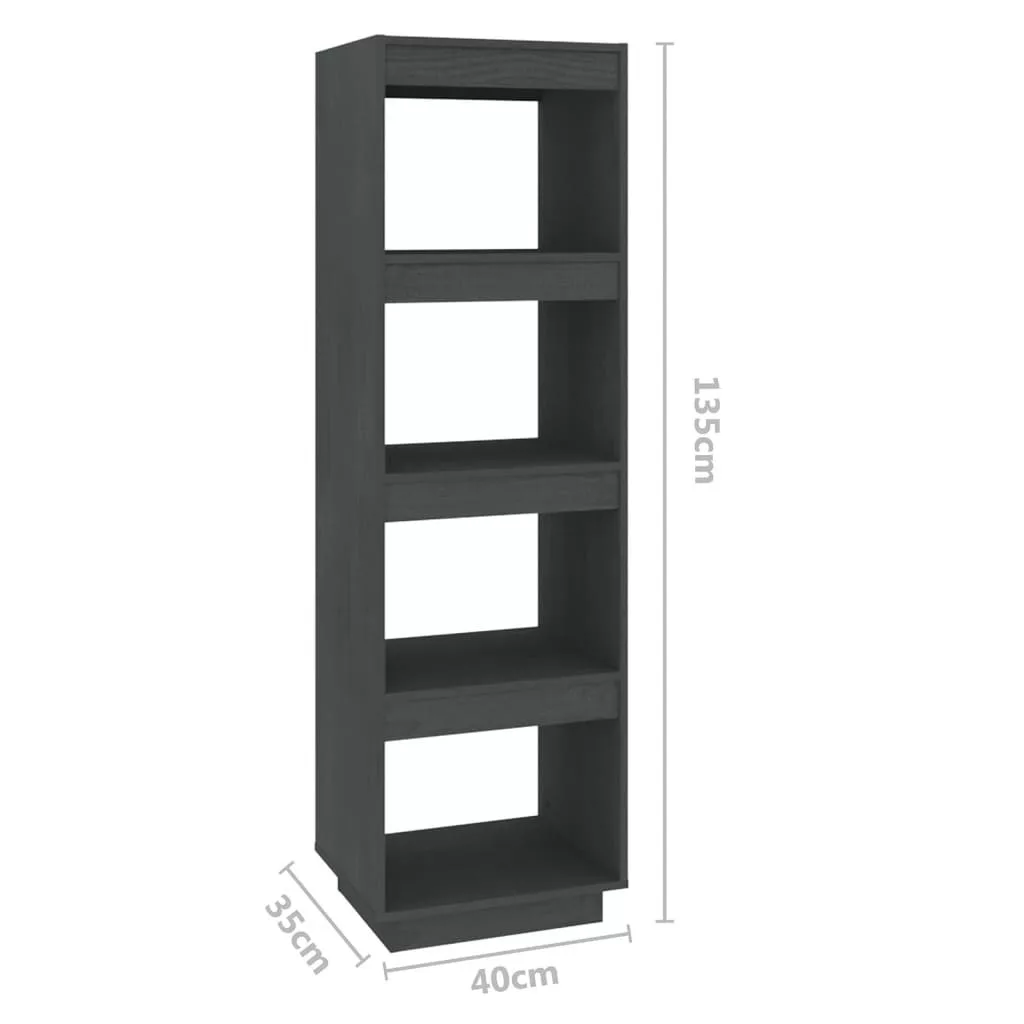 szürke tömör fenyőfa könyvszekrény/térelválasztó 40x35x135 cm