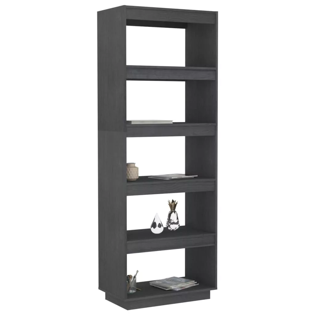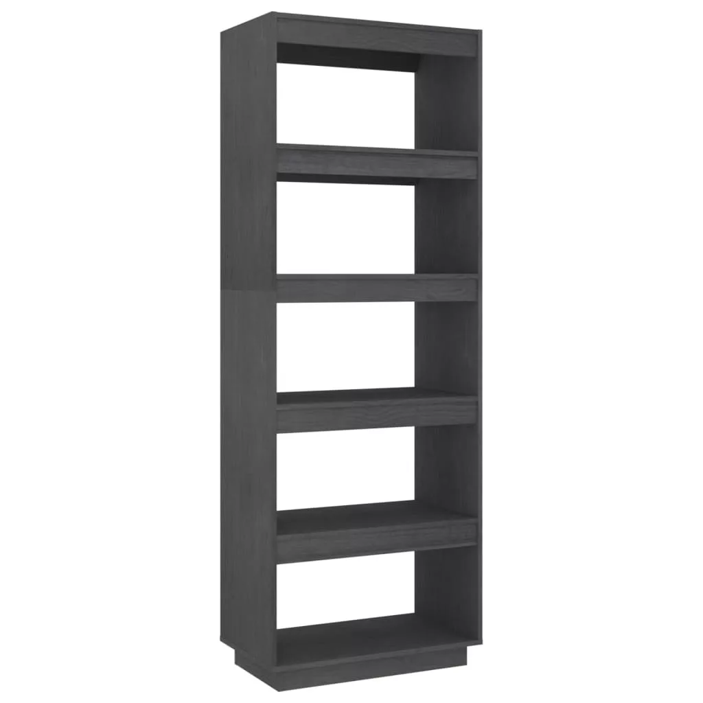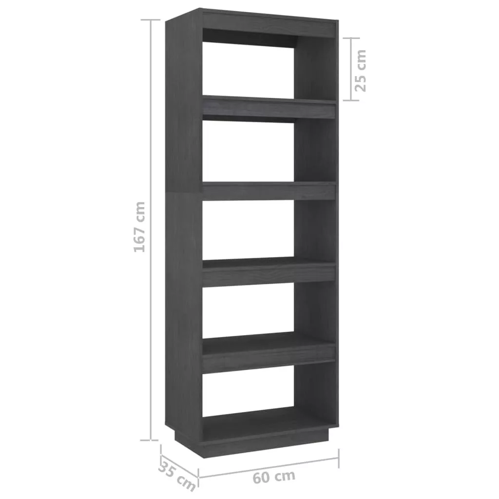 szürke tömör fenyőfa könyvszekrény/térelválasztó 60x35x167 cm