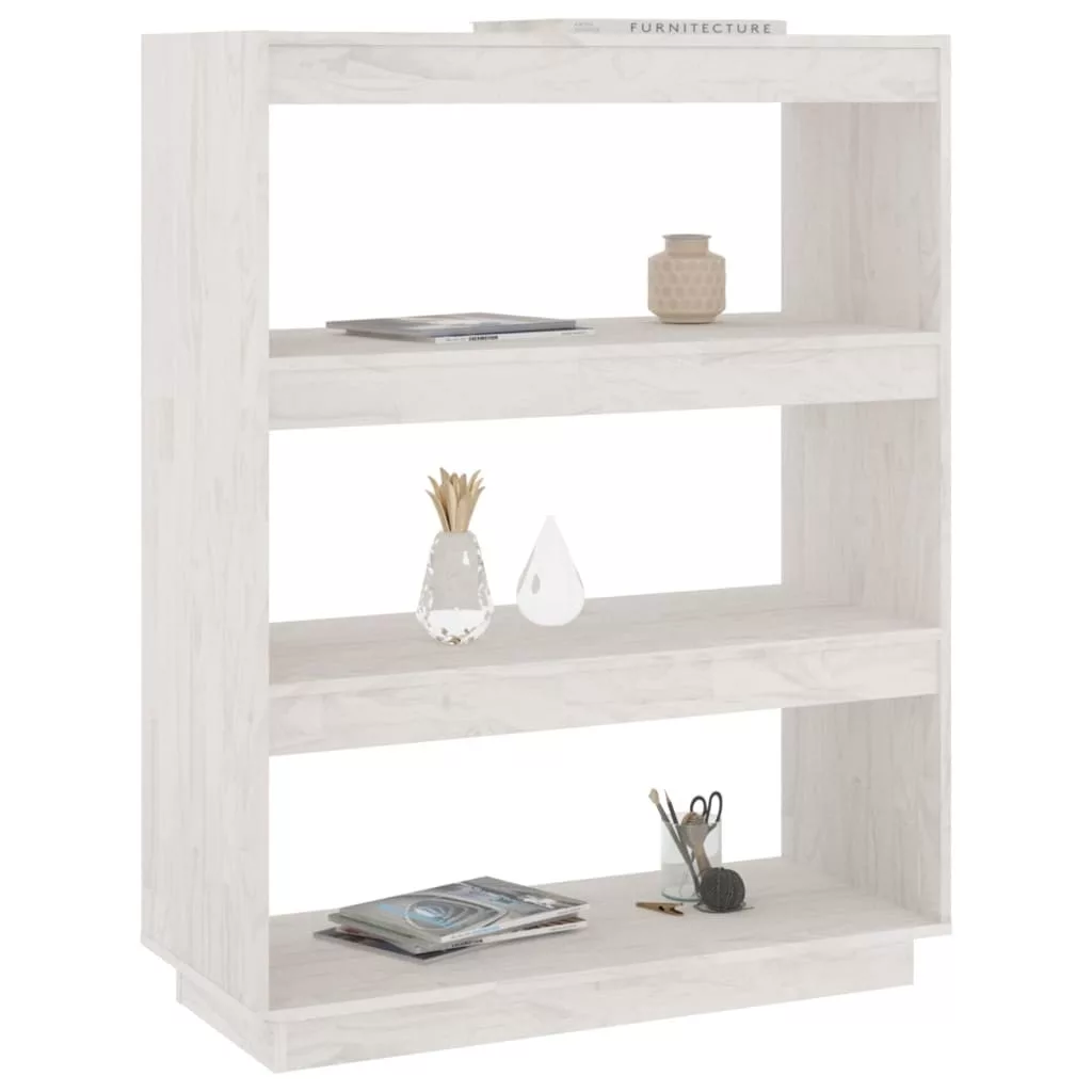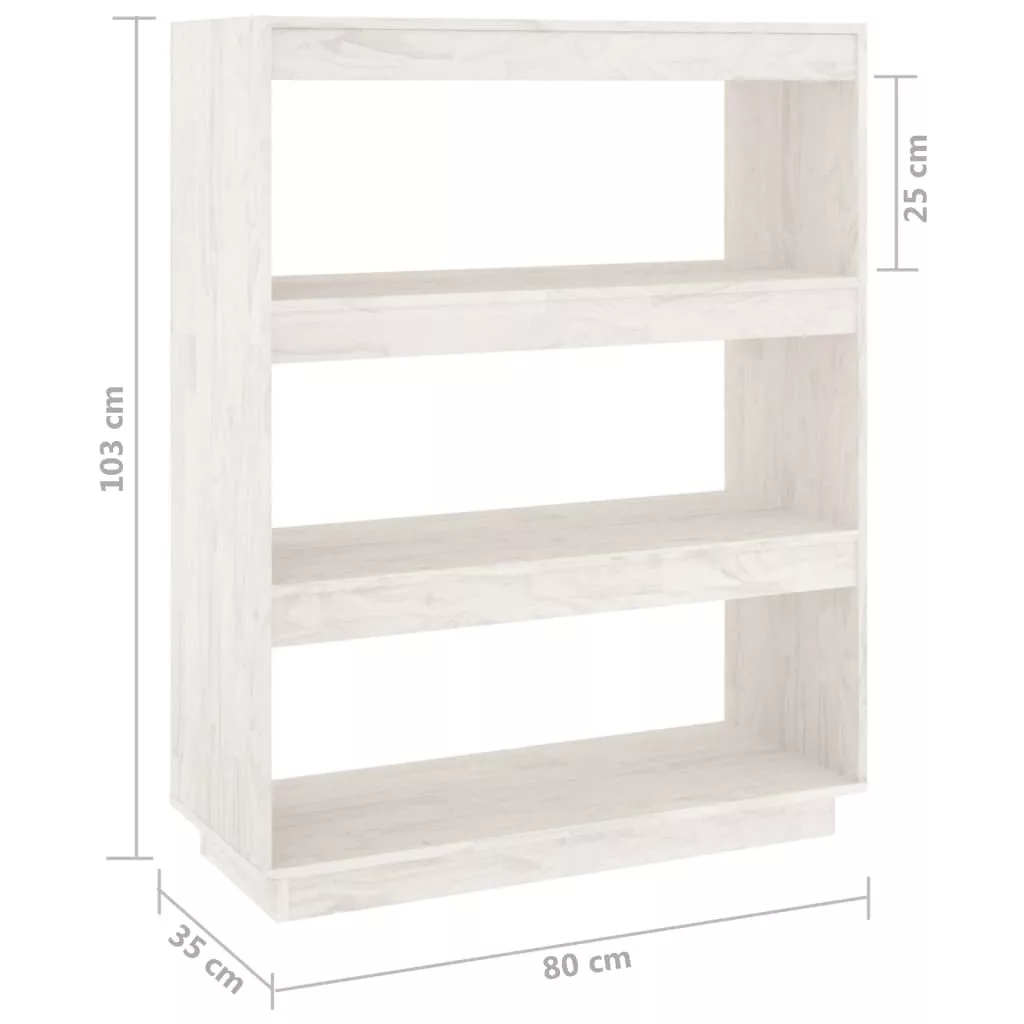 fehér tömör fenyőfa könyvszekrény/térelválasztó 80x35x103 cm