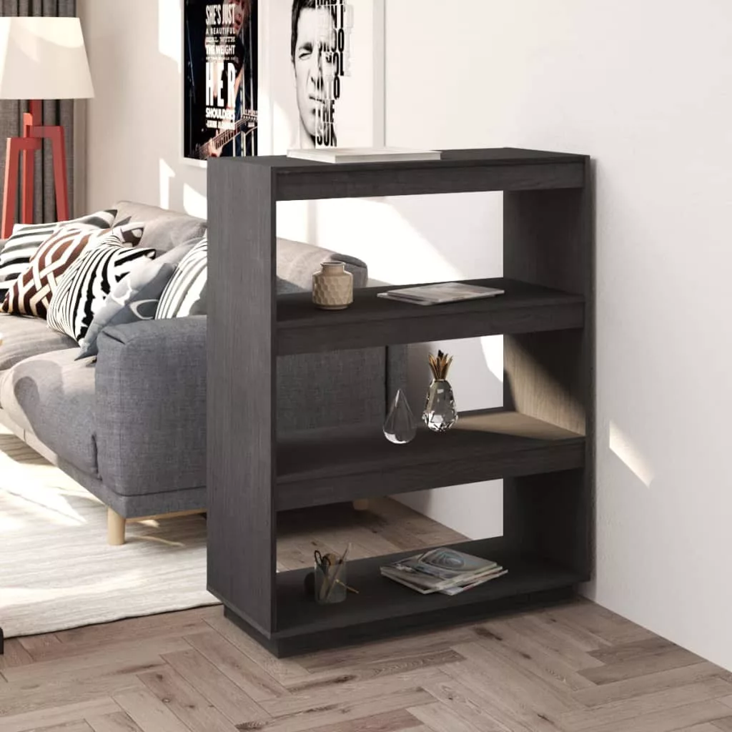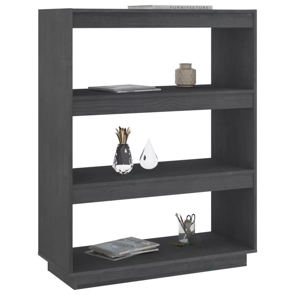 szürke tömör fenyőfa könyvszekrény/térelválasztó 80x35x103 cm