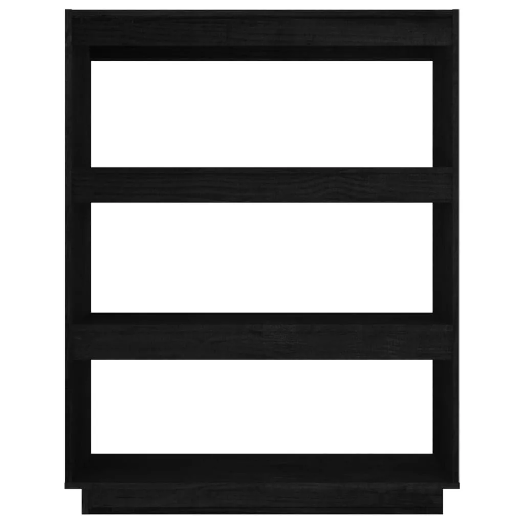 fekete tömör fenyőfa könyvszekrény/térelválasztó 80x35x103 cm