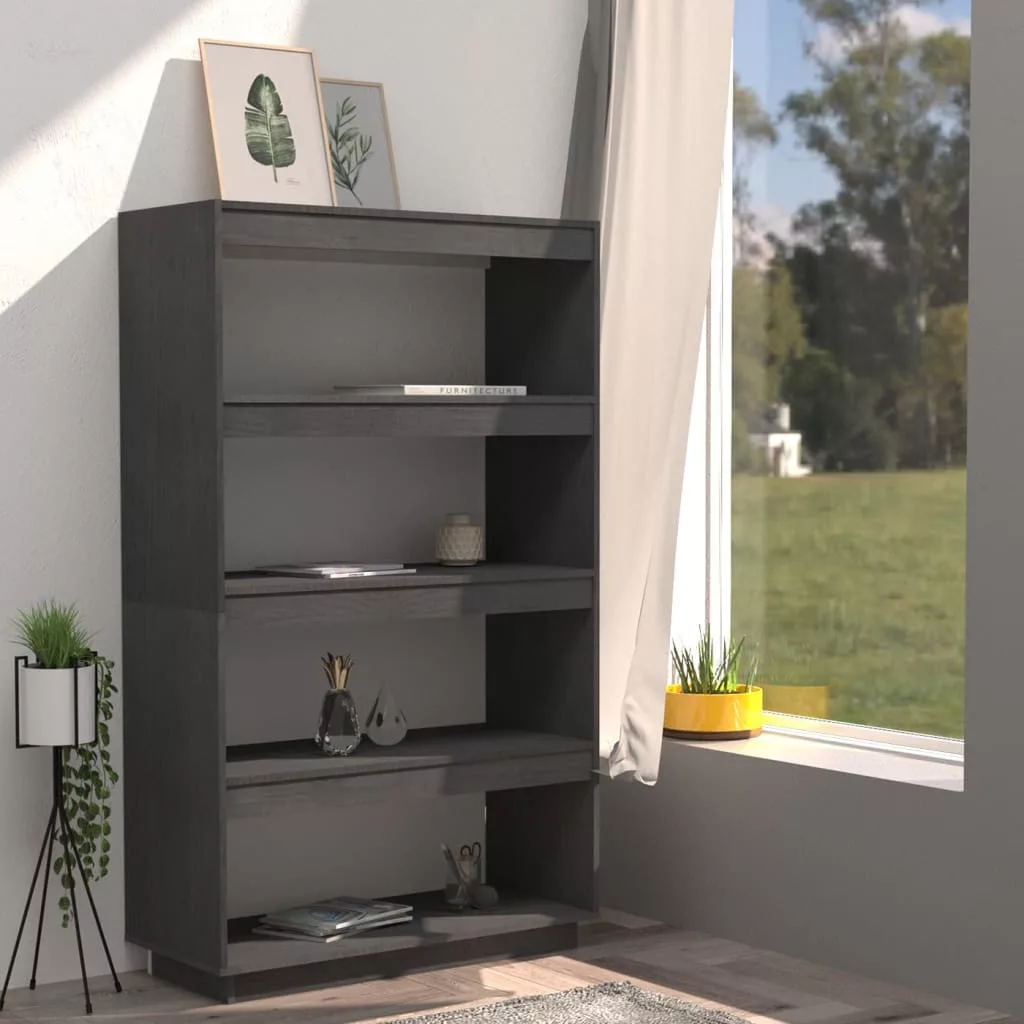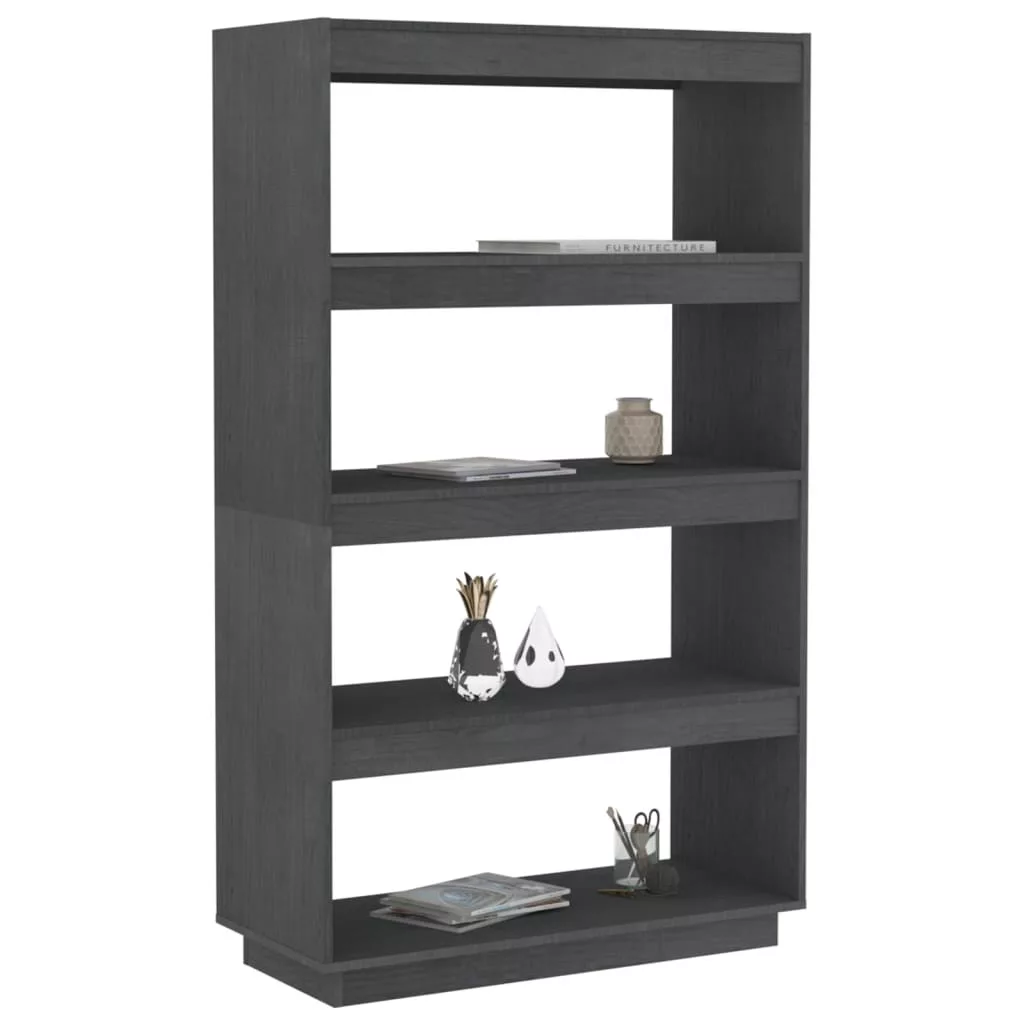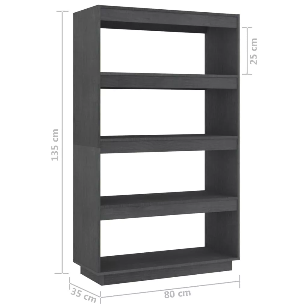 szürke tömör fenyőfa könyvszekrény/térelválasztó 80x35x135 cm