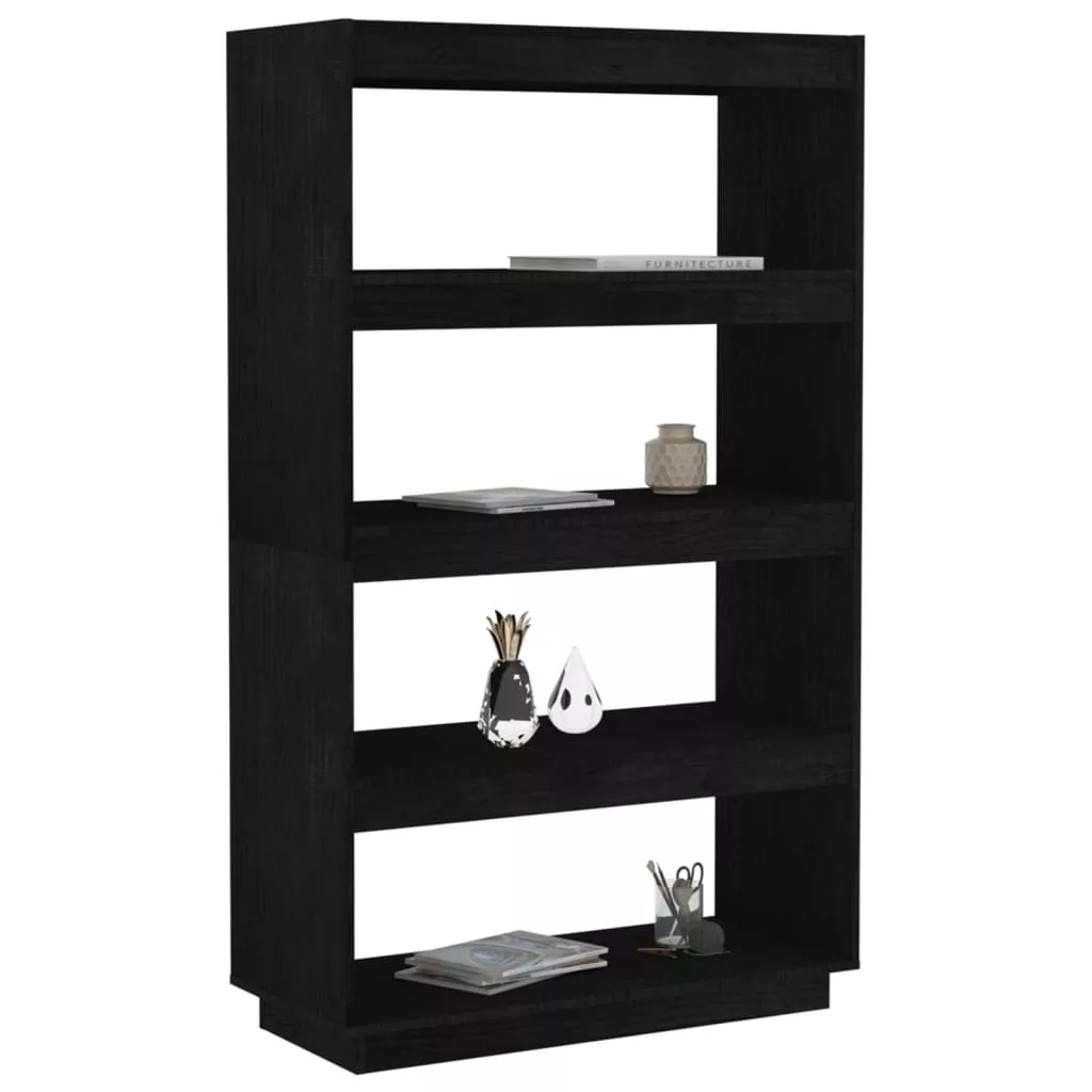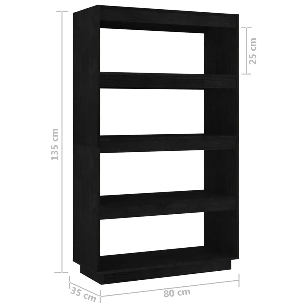 fekete tömör fenyőfa könyvszekrény/térelválasztó 80x35x135 cm