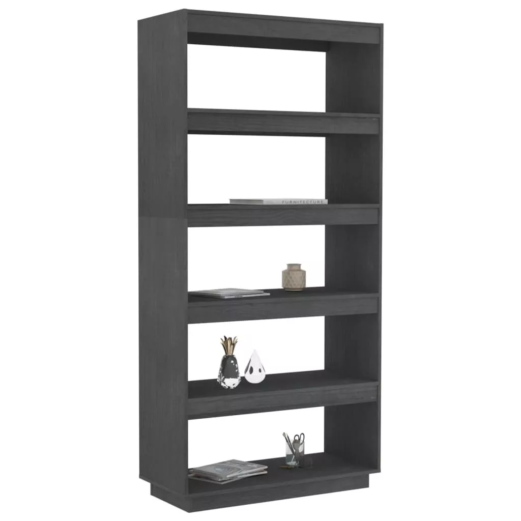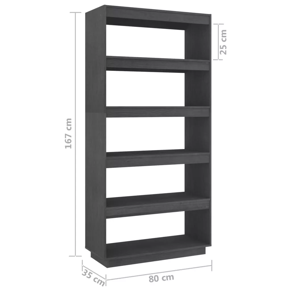 szürke tömör fenyőfa könyvszekrény/térelválasztó 80x35x167 cm