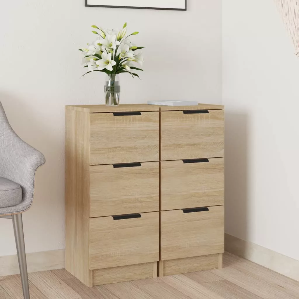 2 db sonoma-tölgyszínű szerelt fa tálalóasztal 30 x 30 x 70 cm