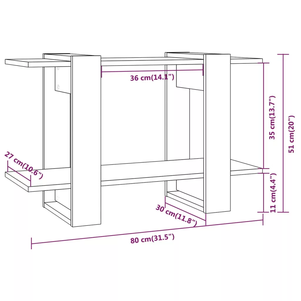 • Polcok mérete egyenként: 80 x 27 cm (Szé x Mé)
