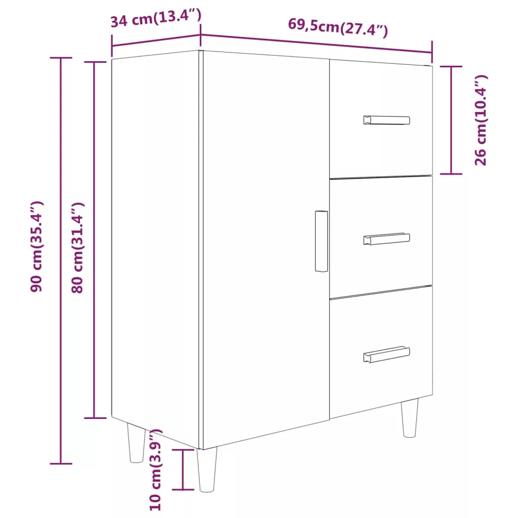 fehér szerelt fa tálalószekrény 69,5 x 34 x 90 cm