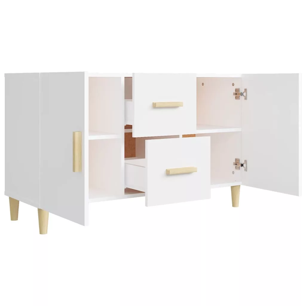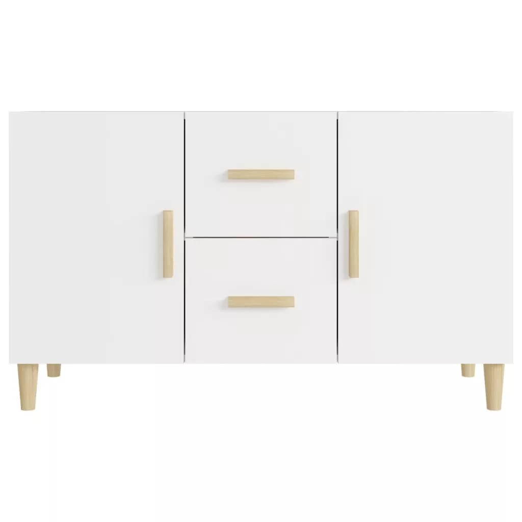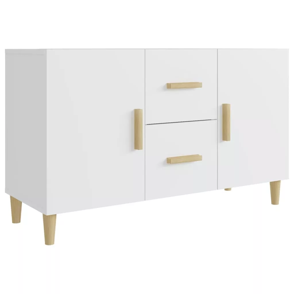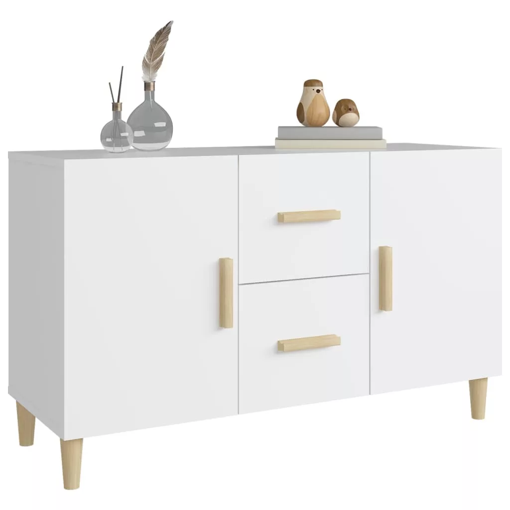 Ez a klasszikus tálalószekrény otthona dekoratív és praktikus kiegészítője lesz. Prémium minőségű anyag: A szerelt fa kivételes minőségű, sima felületű, szilárd, stabil és ellenáll a nedvességnek.Bőséges tárolóhely: A kisszekrény 2 ajtóval és 2 fiókkal rendelkezik, amelyek bőséges tárolóhelyet biztosítanak alapvető kellékei kézközelben történő rendezett tárolásához. A szekrény felső lapja kiválóan alkalmas dísztárgyai elhelyezésére.Könnyű tisztítás: Ez a tárolószekrény nedves ruhával könnyen tisztítható.Elegáns kialakítás: Ez az elegáns kialakítású büfészekrény egy csipetnyi egyedi bájt csempész otthonába! Figyelem:A dőlés megakadályozása érdekében a terméket a mellékelt tartóelem segítségével rögzíteni kell a falhoz.