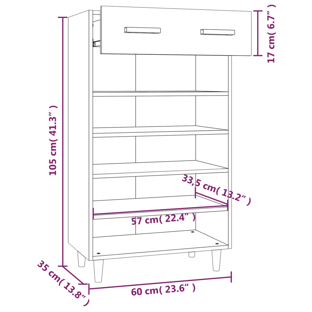 sonoma tölgy színű szerelt fa cipősszekrény 60 x 35 x 105 cm