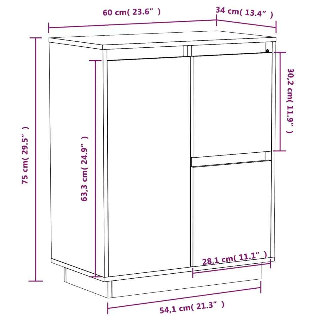 fehér tömör fenyőfa tálalószekrény 60 x 34 x 75 cm